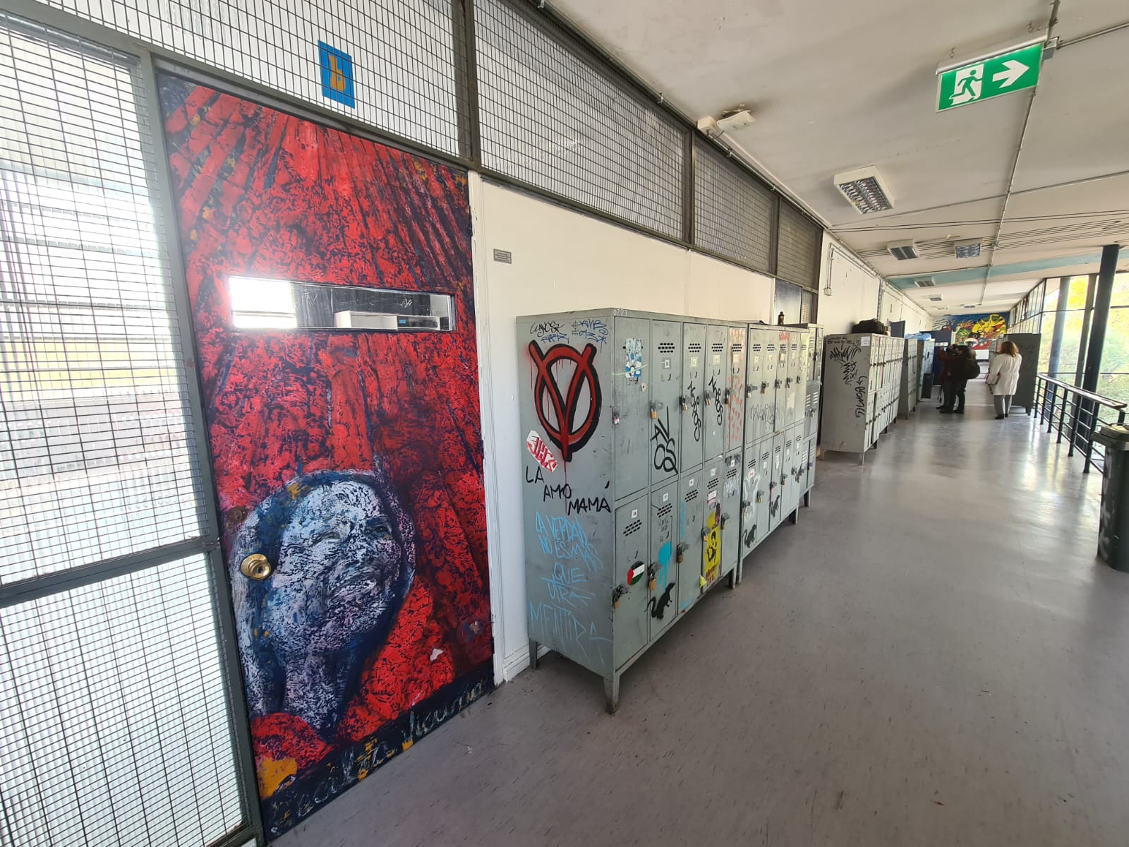 Se instalaron placas cerámicas en las entradas de las salas y se mostró el resultado de un proceso de restauración de la pintura de una puerta, realizada durante la toma feminista de 2018.