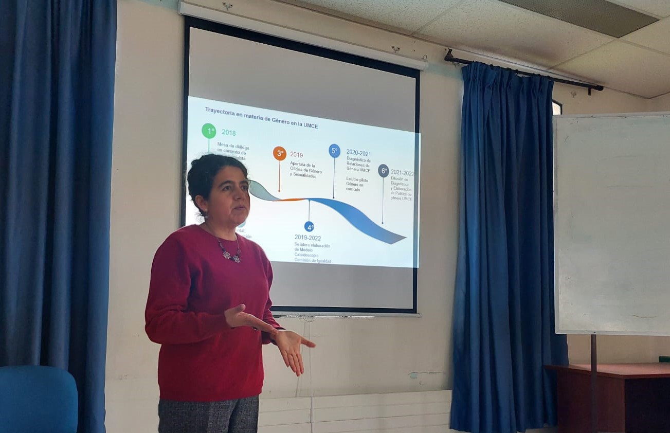 Profesionales de la Oficina de Género y Sexualidades UMCE organizaron cuatro actividades para dar a conocer y promover la Política a estudiantes de la carrera.