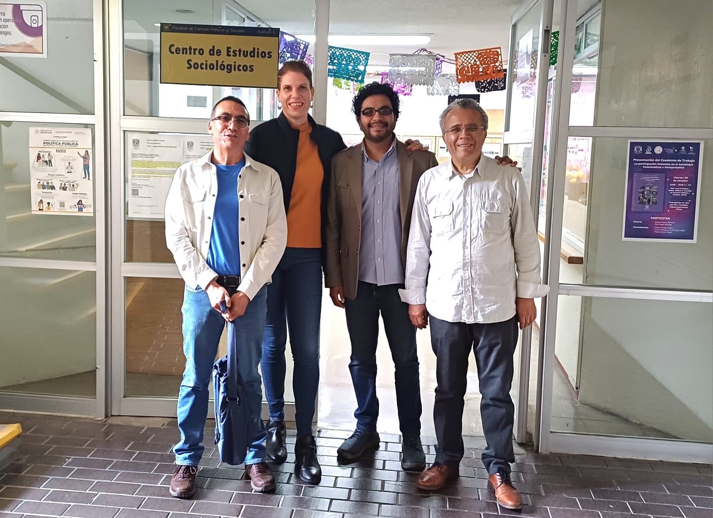 Dr. Alejando Peña, secretario académico CES UNAM; Dra. Rosa García, directora Proyecto de Investigación; Dr. Alejandro Tafoya, director CES UNAM; Dr. José Michel, académico UMCE. [/caption]