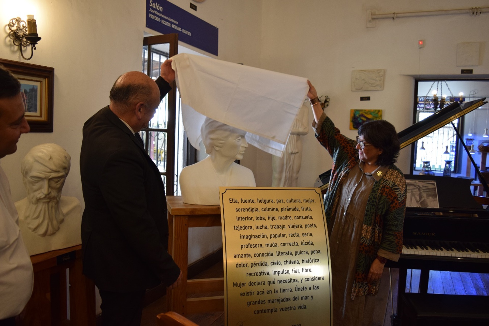 Rectora UMCE recibe representación artística de Gabriela Mistral de parte de Fundación José Recabarren