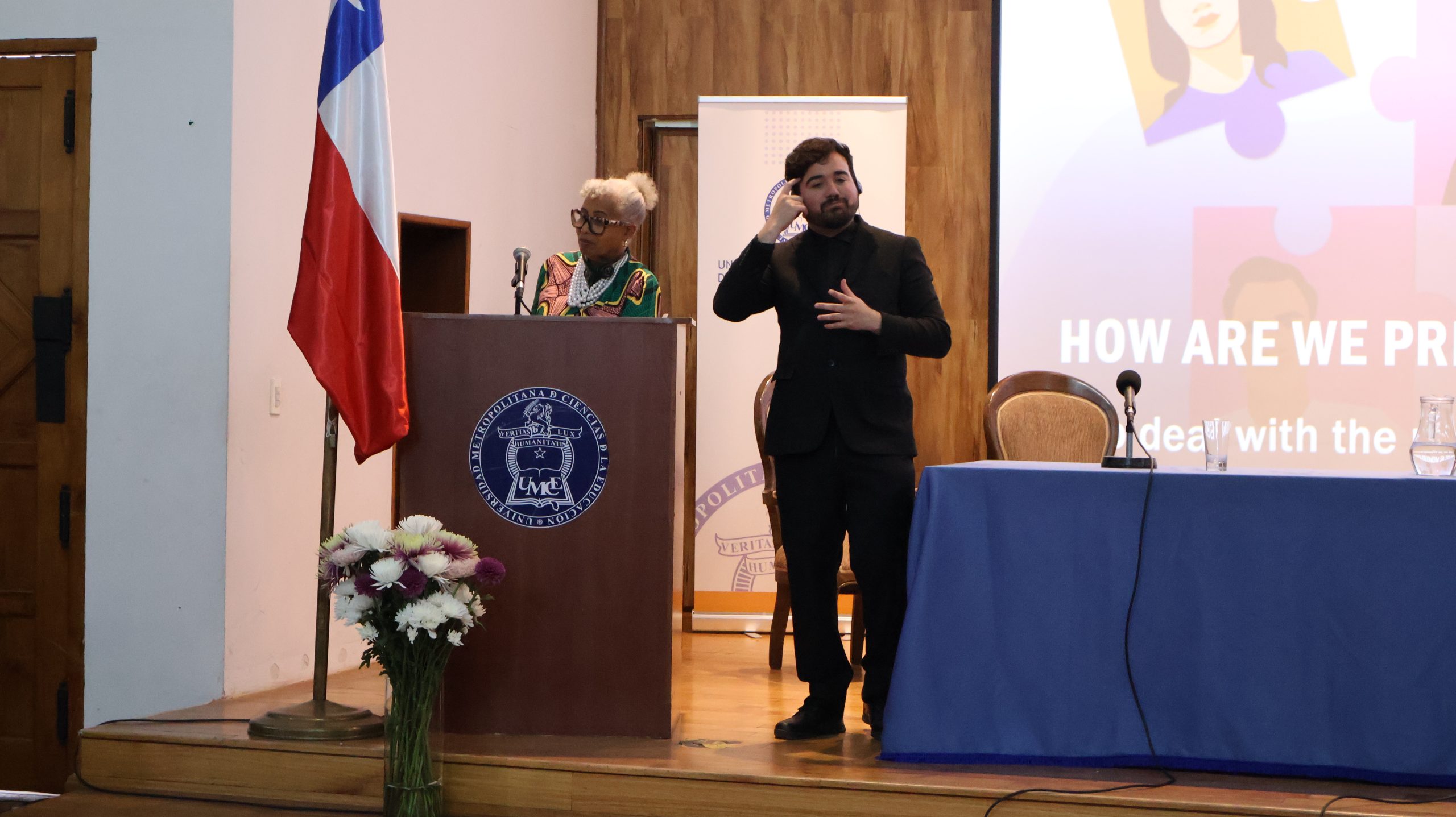 La actividad, organizada por el eje de formación de dicha instancia y que tuvo una alta convocatoria, contó con la presencia de la Rectora Elisa Araya Cortez e integrantes de la Oficina de Género y Sexualidades, académicas y funcionaria de la Unidad de Gestión Curricular Institucional.