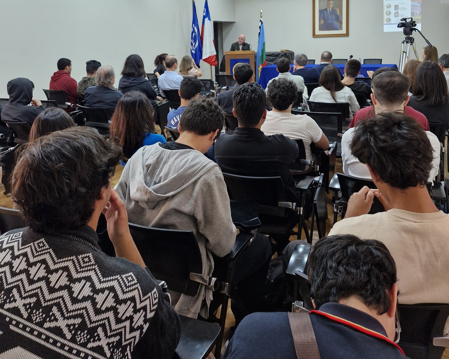 El encuentro realizado en el Salón Juan Gómez Millas es parte del desarrollo del proyecto de Extensión a cargo de docentes de Francés, Matemática, Alemán y del Centro de Estudios Clásicos.