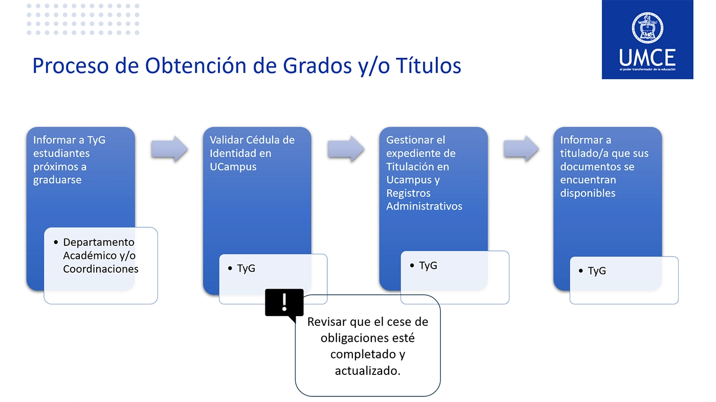 Revisar y validar que se cumplan todos los requisitos y normativas de la UMCE para otorgar título y/o grado académico.