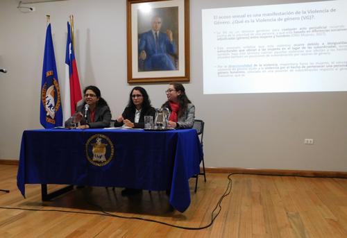 Junto al rector Jaime Espinosa realizaron, el pasado 8 de mayo, una de las primeras socializaciones del “Protocolo de actuación contra el acoso sexual, acoso laboral de connotación sexual y discriminación arbitraria”, con la que la máxima autoridad anunció el pleno funcionamiento de esta Oficina, “para el desarrollo de ésta y otras acciones que permitan avanzar en la igualdad de género”.