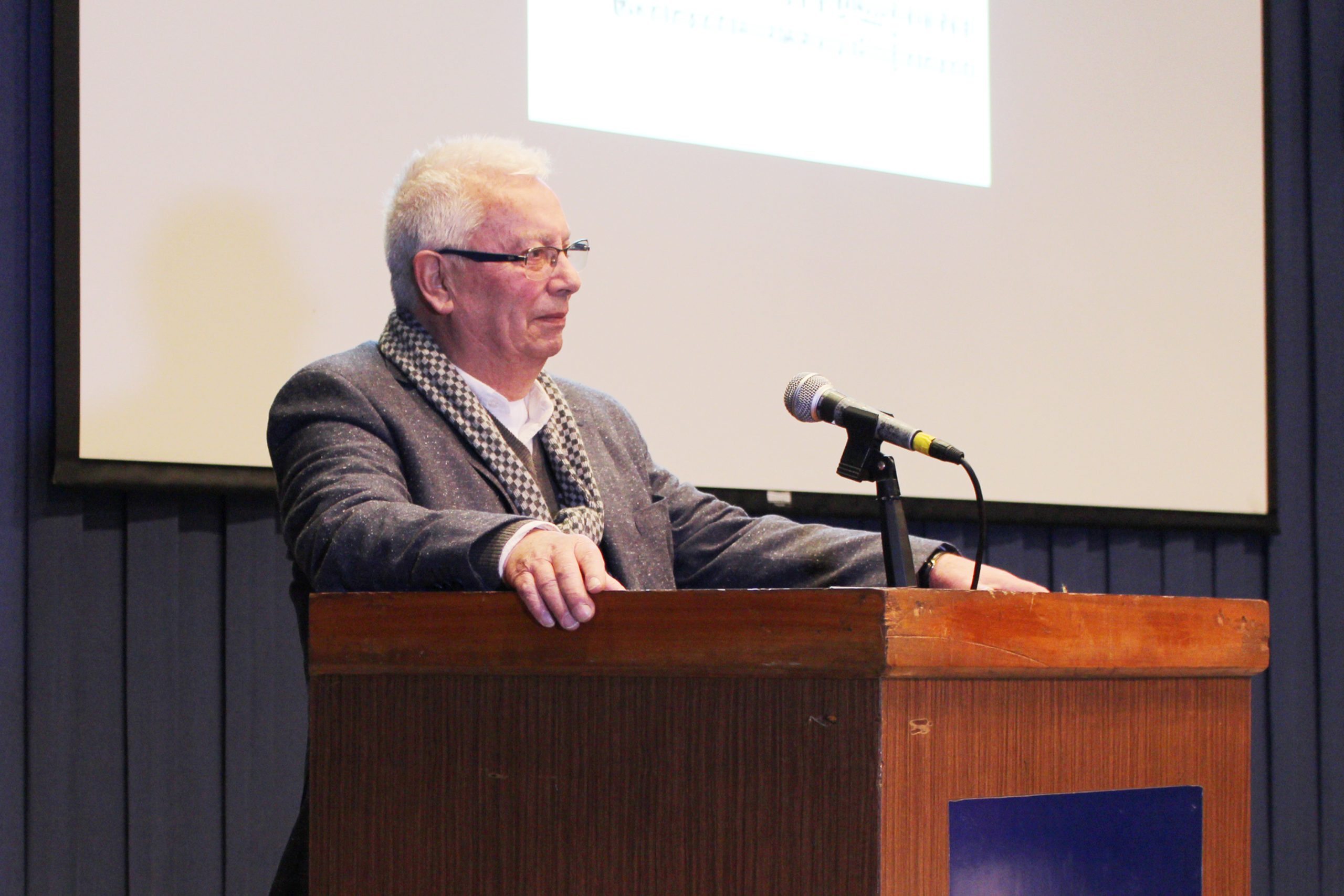 Víctor Hugo López Sandoval, director del Departamento, encabezó una emotiva ceremonia, donde solo hubo palabras de reconocimientos a la labor de Meyer. “Cuando me sumé por primera vez a este universo que es hoy el Departamento de Artes visuales, descrubrí, además de un espacio donde habitaba en difíciles condiciones en ese tiempo la educación y el arte, a un grupo de personas que se esmeraban por humanizar cada rincón a través de su esforzado quehacer educativo y creativo. Una de esas figuras, refugiada en lo profundo del mundo subterráneo de este edificio, lo veía trabajar, con sus manos hundidas en la arcilla húmeda. A veces no se diferenciaba de esa misma materia. A Julio Meyer lo conocí surgiendo desde la tierra, absorto en su trabajo, dialogando ritual y cotidianamente con la producción de obras cerámicas y cómo él mismo lo hace saber: La cerámica es una técnica bastante compleja. Usa los 4 elementos: aire, agua, fuego y tierra. Ahí se conjuga todo“, expresó. “Hoy descubro más potente al Julio Meyer. Alguien quien, finalizando un trascendental ciclo de su vida, se acoge al descanso de la esfera académica, pero no al de la creación, preparándose para emprender nuevos horizontes, domiciliándose en otros espacios. No, no estamos frente a un retiro, a un final, sino al comienzo del mismo y eterno círculo, el cual seguirá girando seguramente por bastante tiempo más”, agregó.
