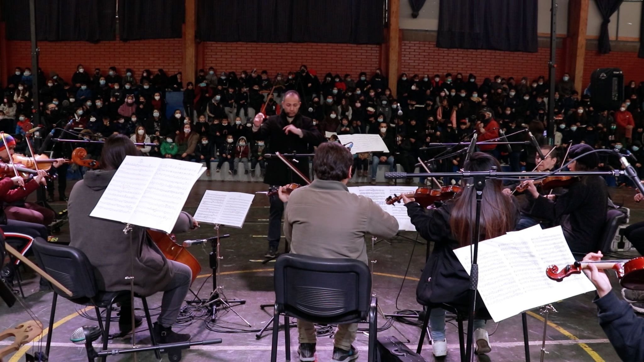 A través de dinámicas interactivas y haciendo partícipe al público, Calenda Maia, el Coro DEMUS y la Orquesta de Cámara de la UMCE cautivaron la atención de estudiantes del establecimiento.