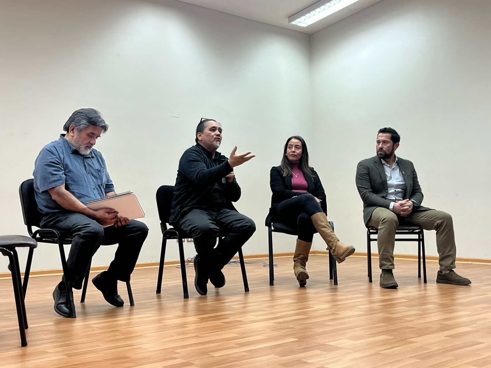 Durante la jornada se desarrolló un panel de conversación sobre los desafíos y proyecciones que implica la implementación de la Nuclearización Curricular en la Región de Atacama, considerando su impacto en la labor docente, el trabajo directivo y la gestión pedagógica. En este espacio participaron Ángel Araya, docente representante de la escuela Laura Robles Silva y dirigente gremial; Luz María Vivar, jefa de la Unidad Técnico-Pedagógica de la Escuela Manuel Orella Echánez de Caldera; y Genaro Medina, encargado de Mejora Continua y Acompañamiento del SLEP Atacama.
