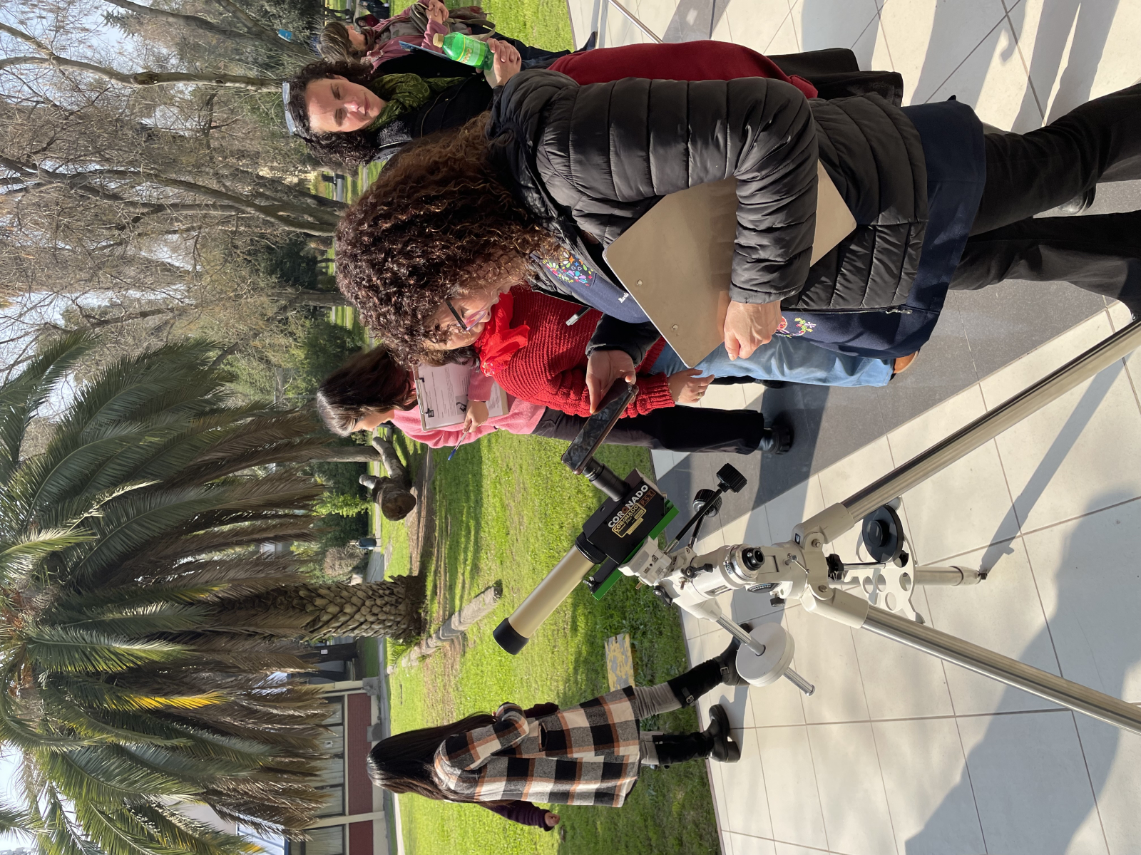 El curso se desarrolló entre el 7 de mayo y el 1 de octubre en modalidad híbrida con 6 sesiones presenciales (1 vez al mes) intercaladas con diversas tareas virtuales. “Trabajamos con todos los temas relacionados con el sistema Sol-Tierra-Luna: sus movimientos, escalas de tamaño y distancia, el día y la noche, estaciones del año, fases de la Luna, eclipses y movimiento aparente del cielo diurno y nocturno. Hicimos, además, una sesión de observaciones diurna (del Sol) y nocturna (de la Luna y estrellas más brillantes) con los telescopios del Observatorio UMCE, y una visita a las instalaciones del Observatorio ALMA en Vitacura”, agregó la Dra. Rodrigues.