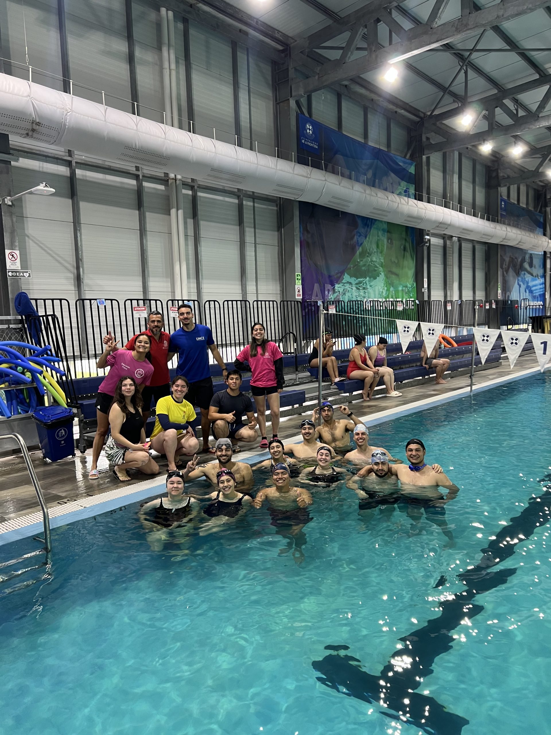 Un grupo de estudiantes ganadores/as del Fondo de Movilidad participó recientemente en el “Encuentro Interuniversitario de Experiencias Situadas UFRO–UMCE”, viajando a Temuco para desarrollar actividades de Aprendizaje Servicio en natación, junto a personas mayores y niños/as. La iniciativa fue liderada por la profesora Karla Vergara A.