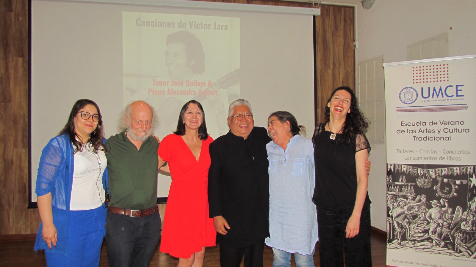 - En el marco de la III Escuela de Verano de Arte y Cultura Tradicional 2026, organizada por CECTU “Raíces”, la UMCE presentó en su Salón de Honor el concierto “Víctor Jara, 15 canciones para canto y piano”, adelanto del libro homónimo actualmente en proceso de finalización.