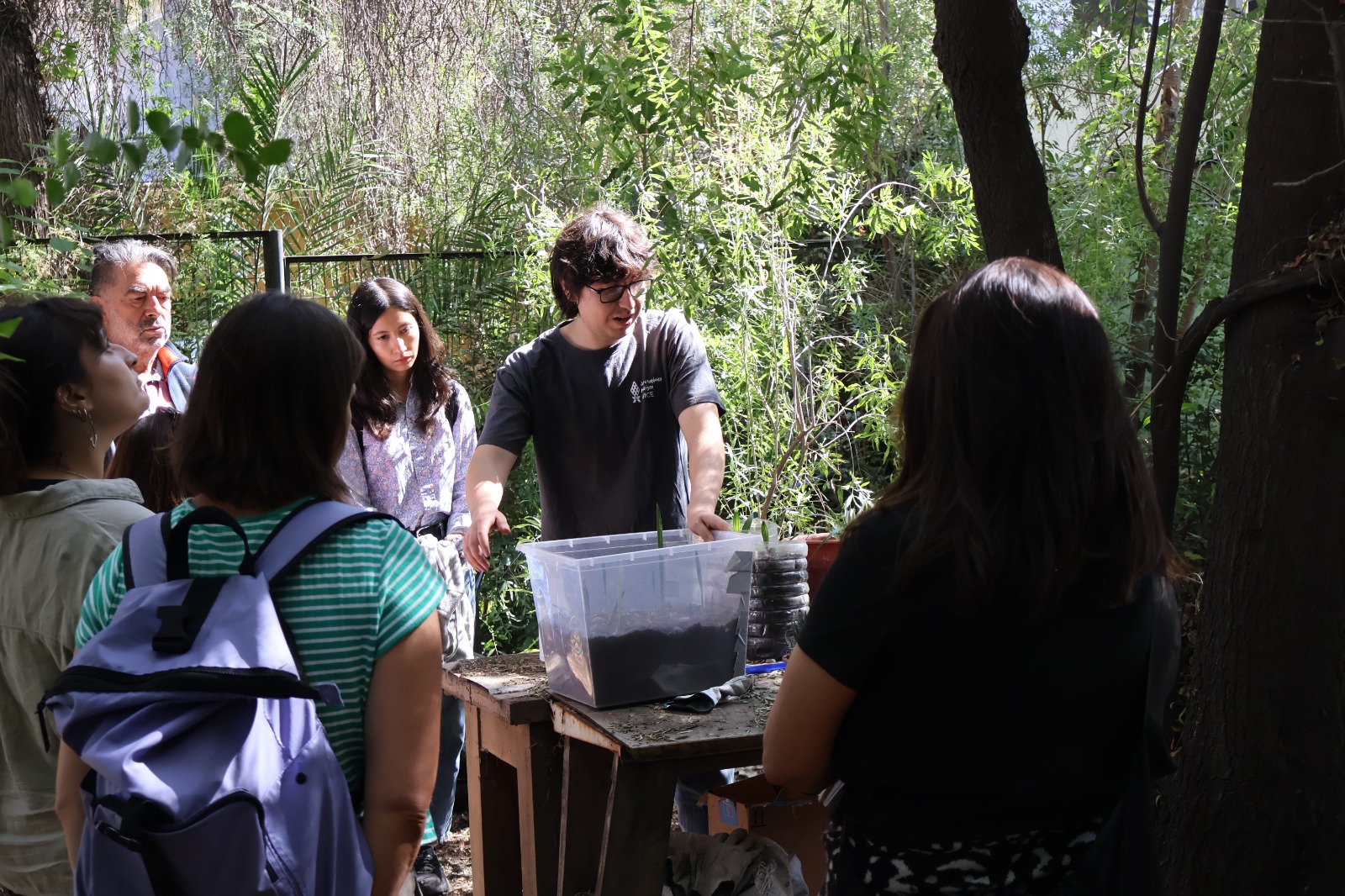 El taller fue facilitado por Roberto Fernández y Francisco González, e incluyó un recorrido por el campus para identificar especies nativas, junto con una actividad práctica sobre tratamientos pregerminativos, sustratos y cuidados.