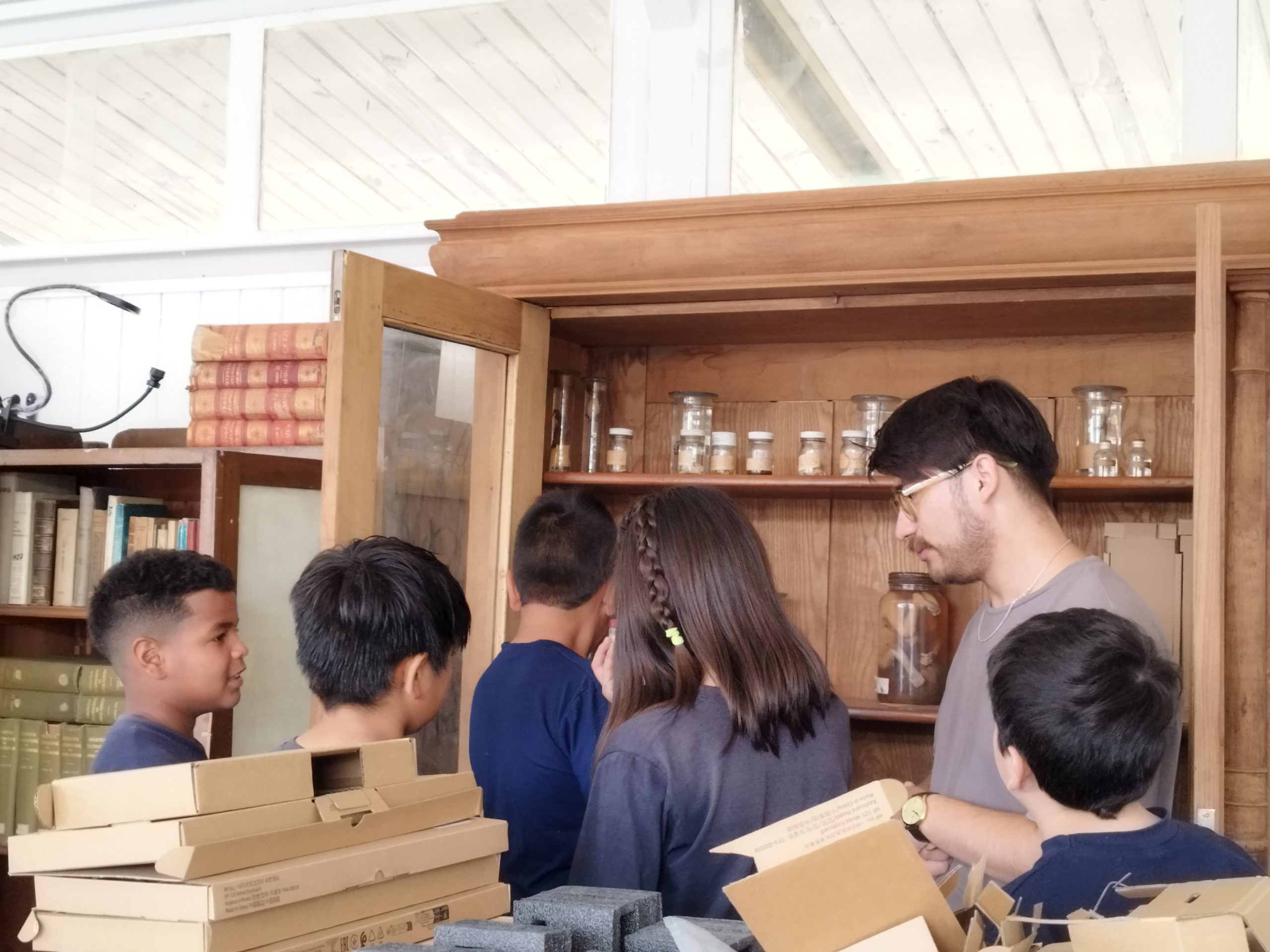 Tras la narración, las y los estudiantes participaron en una visita mediada a la sala patrimonial, espacio donde se desarrollan acciones de preservación de piezas de valor histórico y cultural del liceo. Durante la mediación, se generó un diálogo en torno a qué entendemos por patrimonio, ampliando su significado más allá de los objetos antiguos, hacia recuerdos, experiencias y elementos significativos de la vida cotidiana.