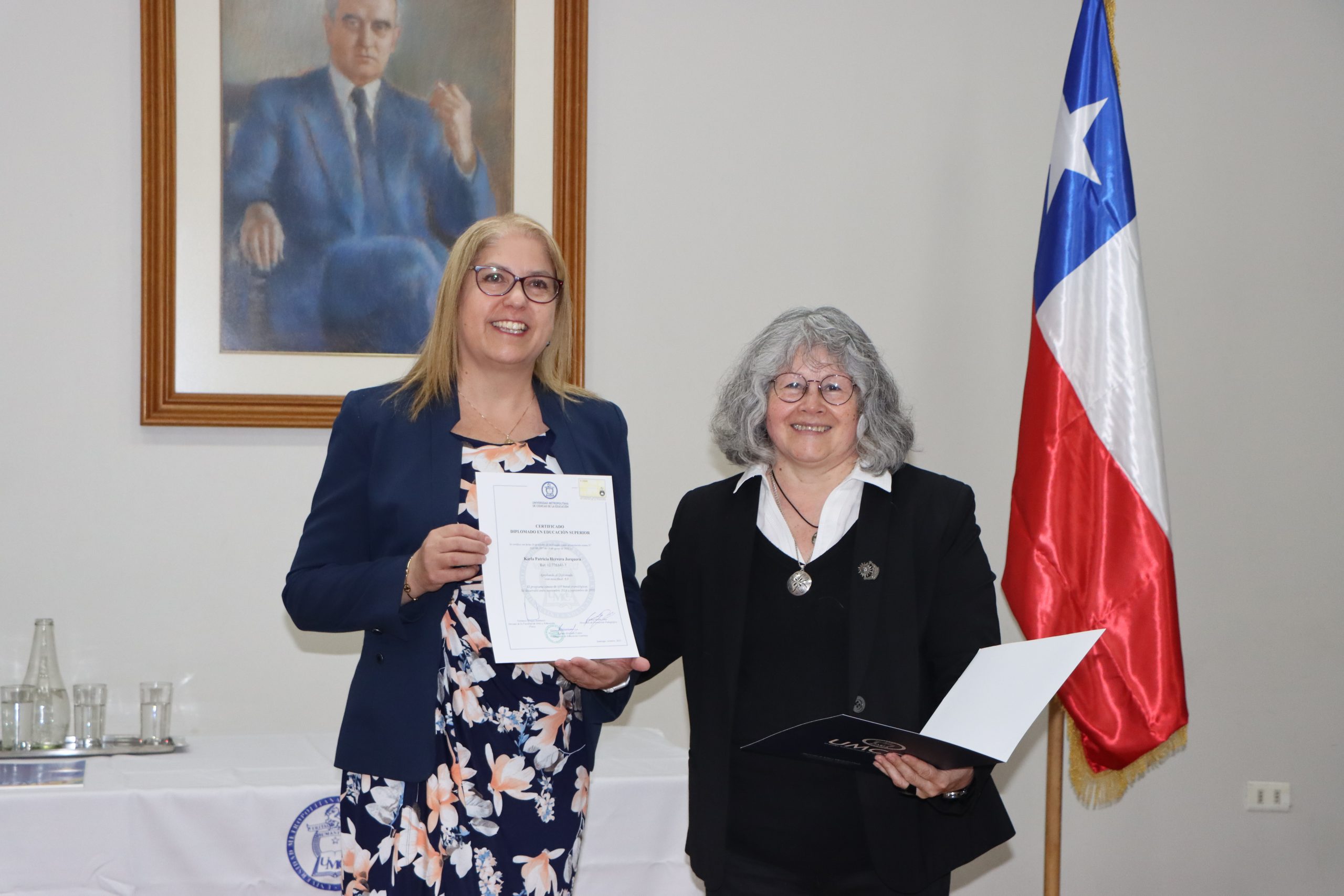 La actividad fue encabezada por la Rectora de la UMCE, Dra. Solange Tenorio Eitel, junto al Director de la Escuela de Suboficiales, Coronel Gerardo Aravena Kompatzki, y contó con la presencia de autoridades universitarias, docentes y profesionales que culminaron con éxito este proceso formativo.