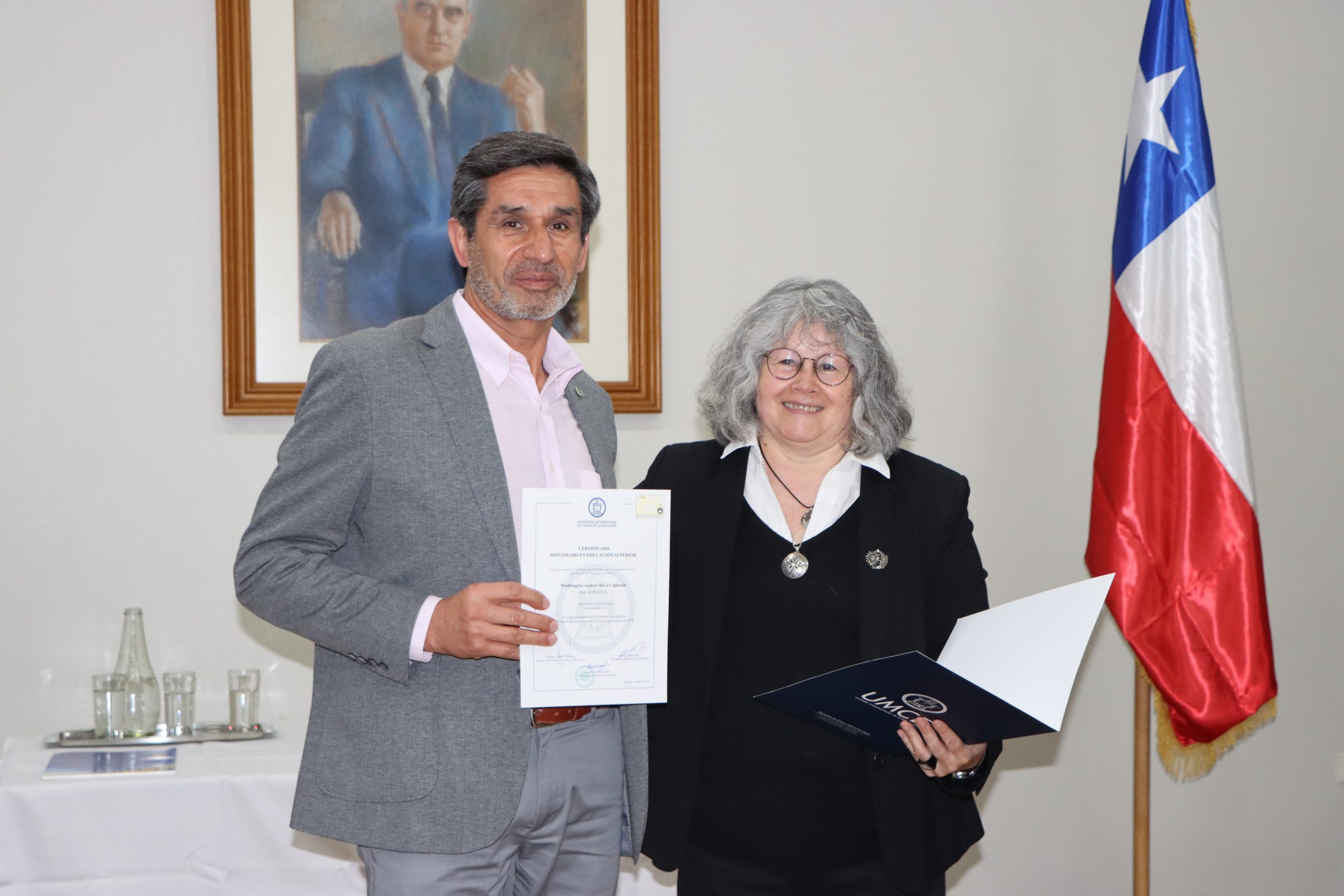 En una ceremonia realizada este viernes 24 de octubre en el Salón Juan Gómez Millas, la Universidad Metropolitana de Ciencias de la Educación (UMCE) celebró la entrega de certificados de la segunda versión del Diplomado en Educación Superior, programa impulsado por la Dirección de Educación Continua y el Departamento de Formación Pedagógica.