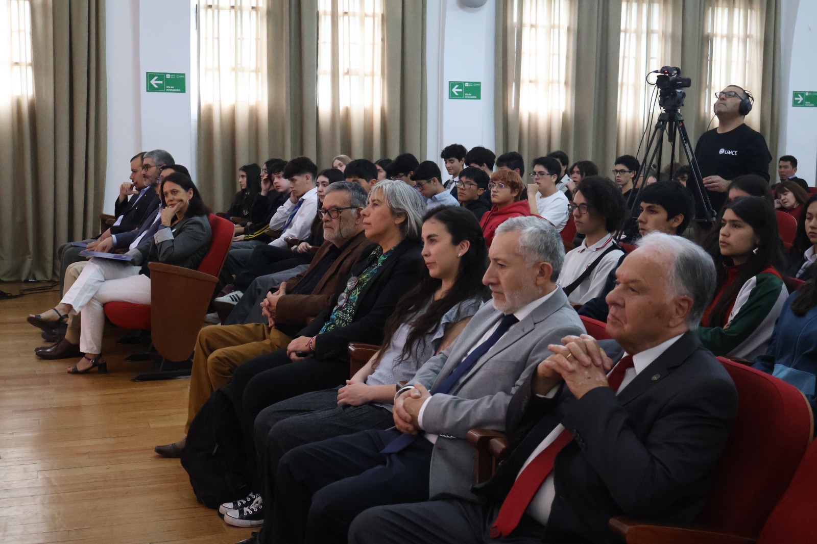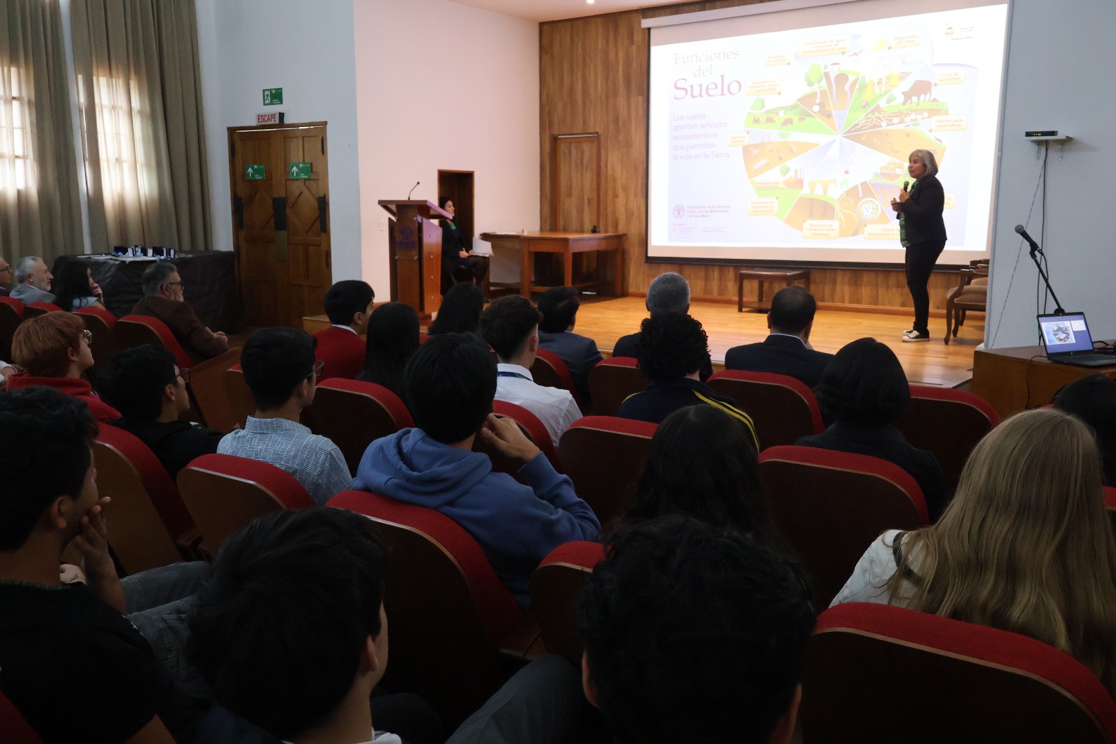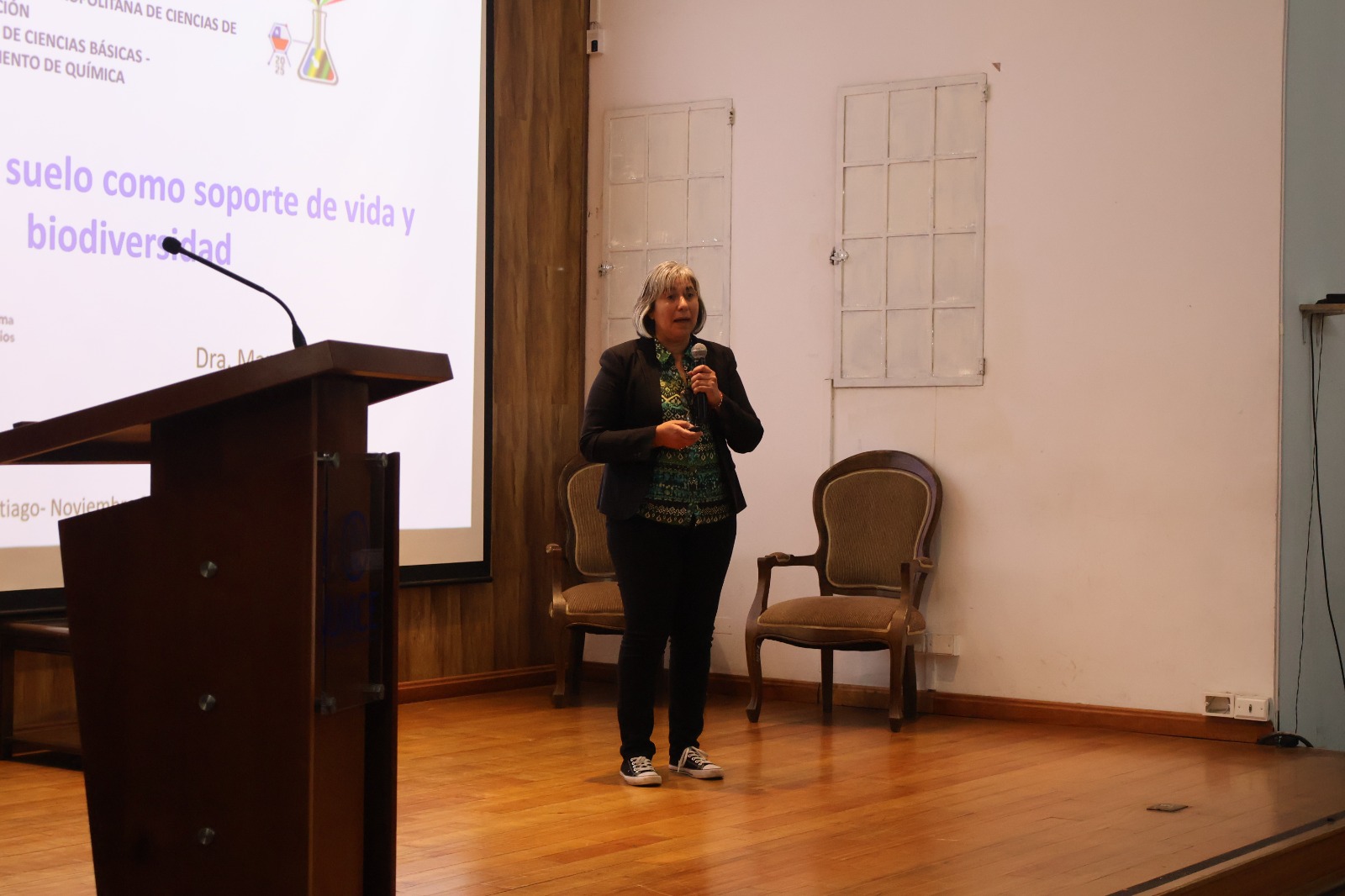 Durante la ceremonia también fue presentada la conferencia “La Ruta del suelo como soporte de vida y biodiversidad”, a cargo de la Dra. Margarita Briceño, de la Universidad Arturo Prat – Iquique, y luego, Benjamín Magaña Ibarra, medallista de Oro Olimpiada de Química del 2024 y medallista de Bronce en la XXIX Olimpiada Iberoamericana de Química, México 2025, compartió parte de su experiencia.