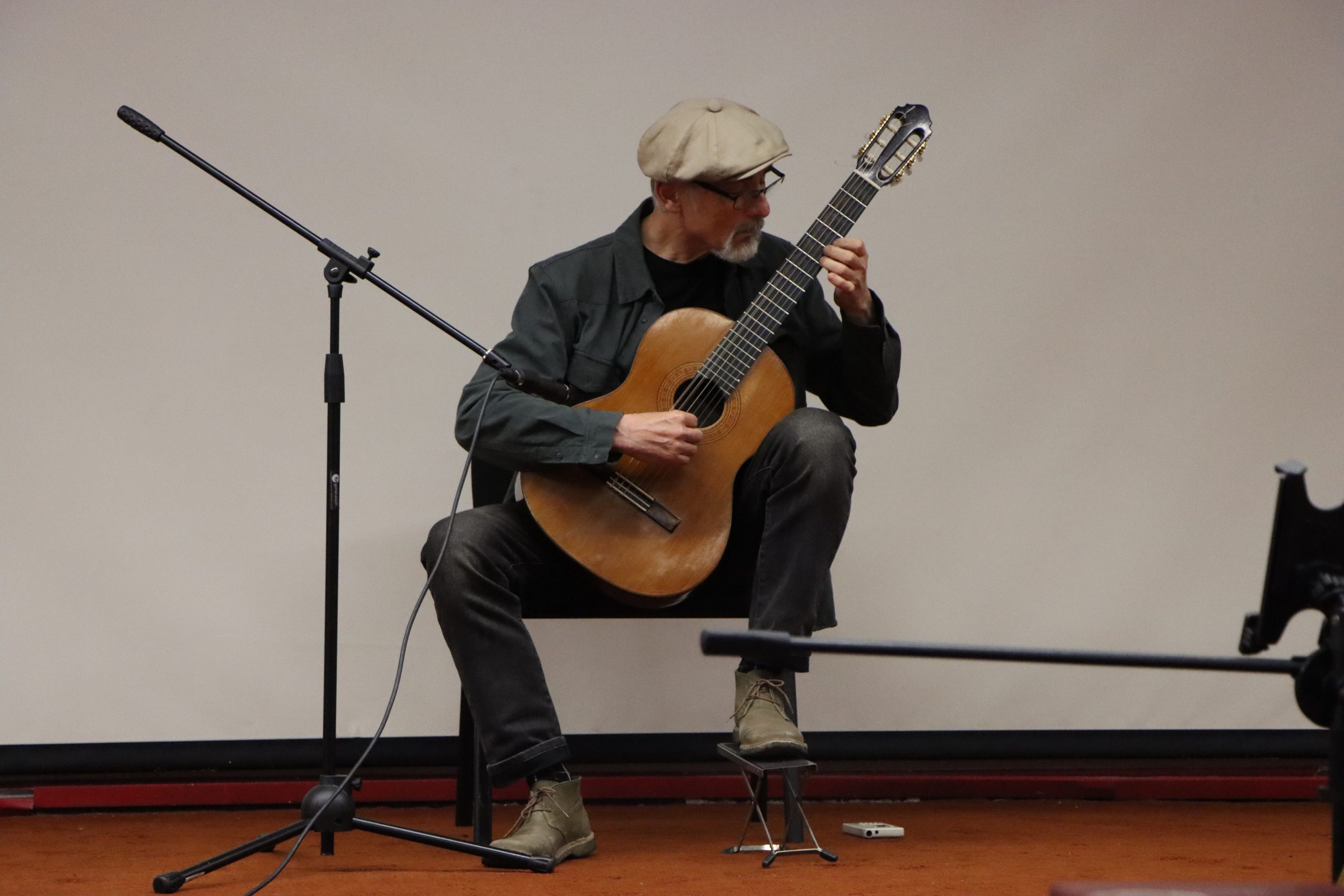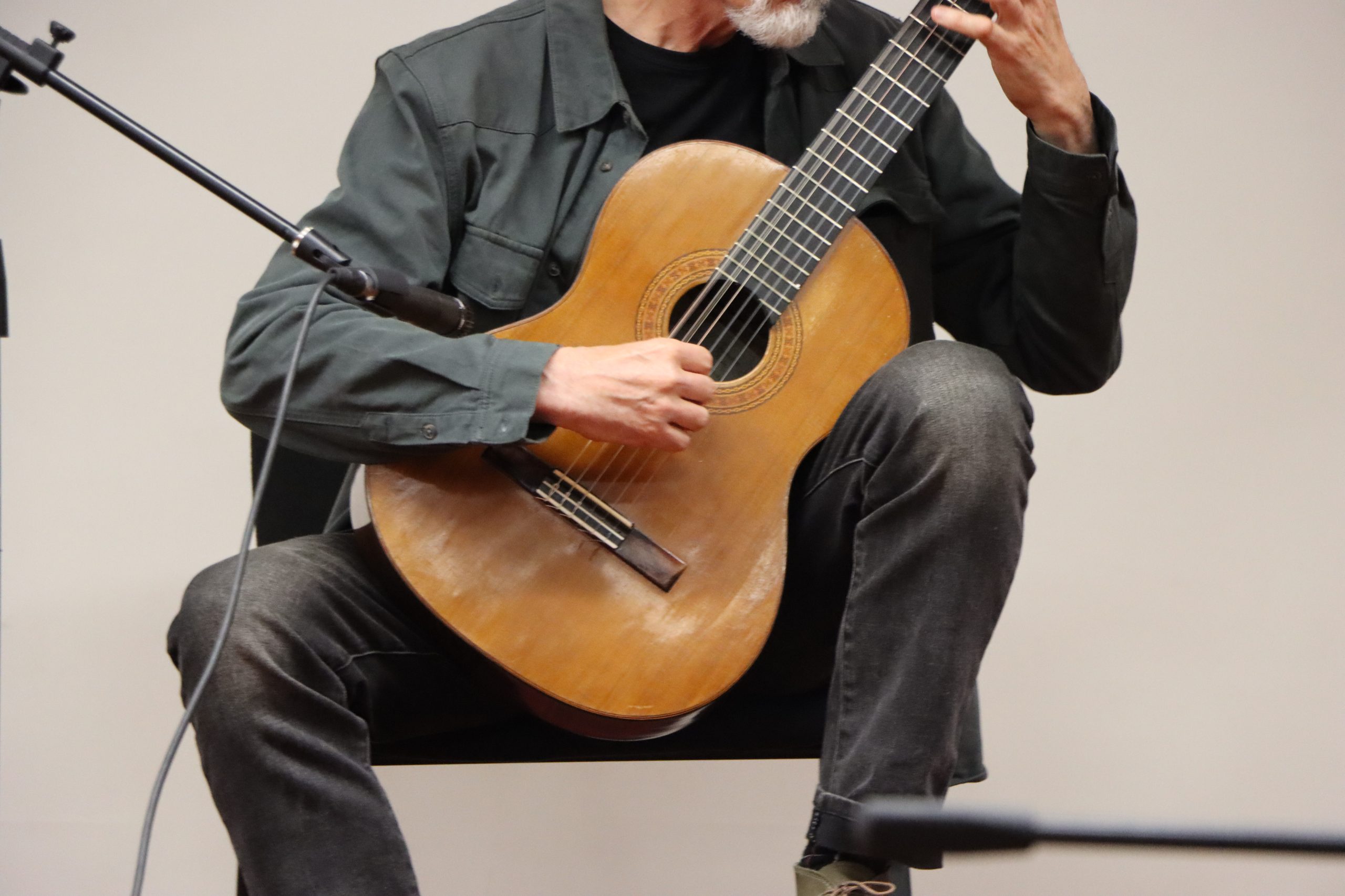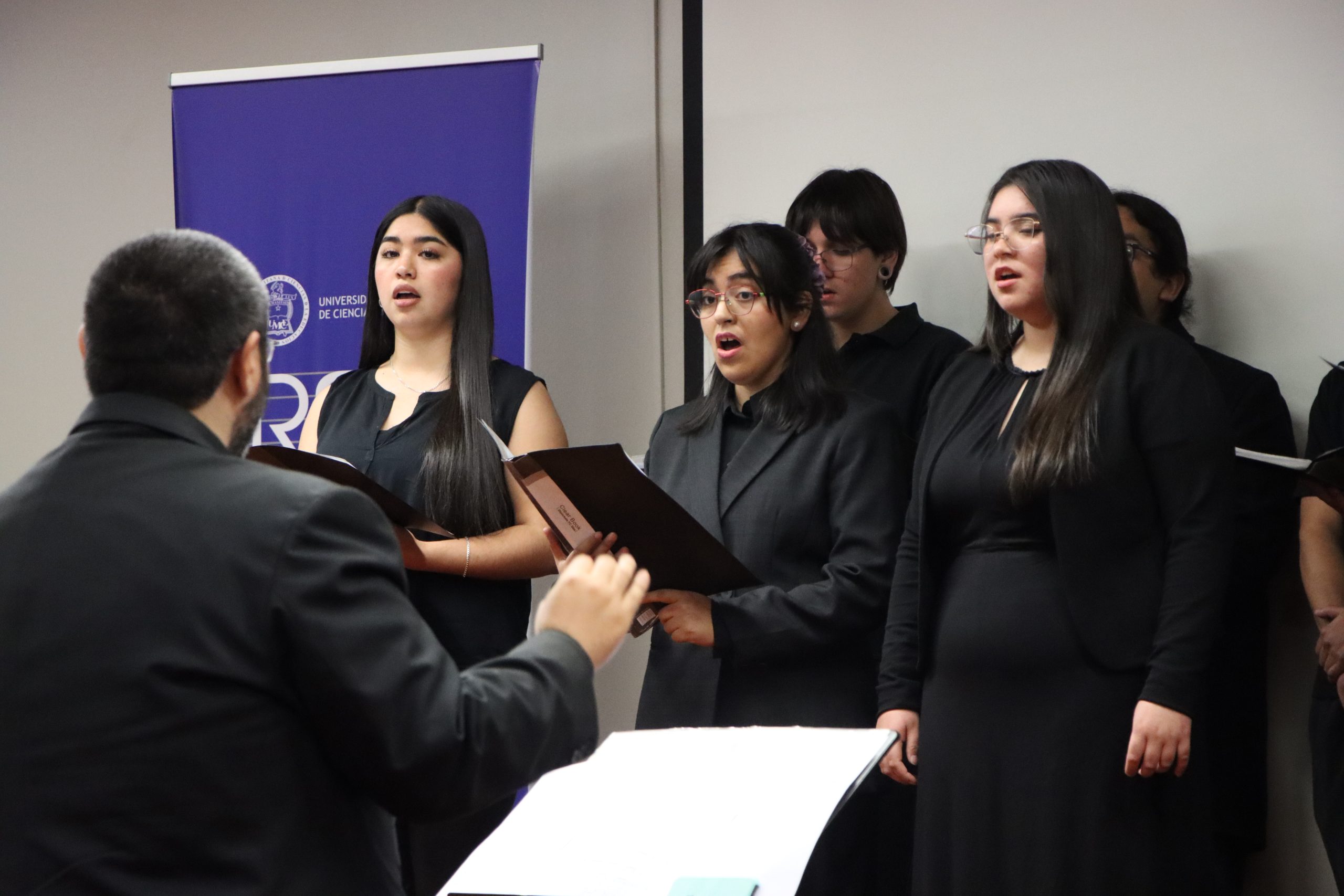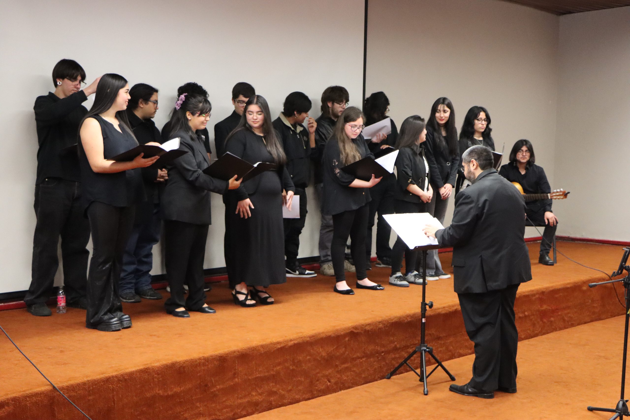 Cerrando la jornada el profesor Cristián Uribe Valladares ofreció una presentación en guitarra, seguida por el curso de Practica Coral, bajo la dirección de Jonathan Collao Rudillo, quienes interpretaron un repertorio composiciones chilenas, como “Las canciones de Natacha” del compositor Pablo Belano con texto de Juana de Ibarbourou, además de “Si somos americanos” de Rolando Alarcón, junto a la compañía del alumno de la licenciatura en música Aaron Gutiérrez. Al finalizar, la Secretaria Académica de la Facultad de Artes y Educación Física, Karina Guerra, entregó un reconocimiento al Dr. Joseph Abramo, en agradecimiento por su participación.