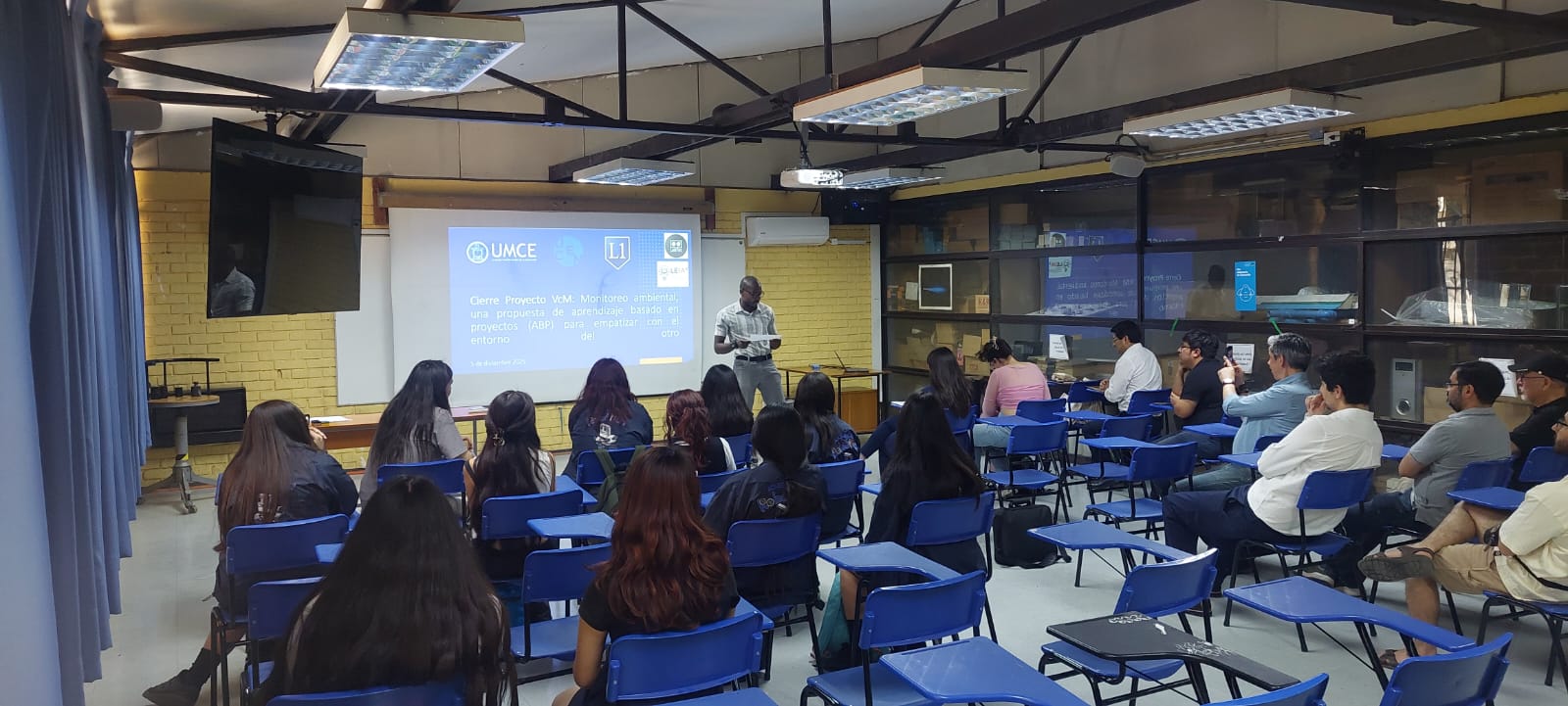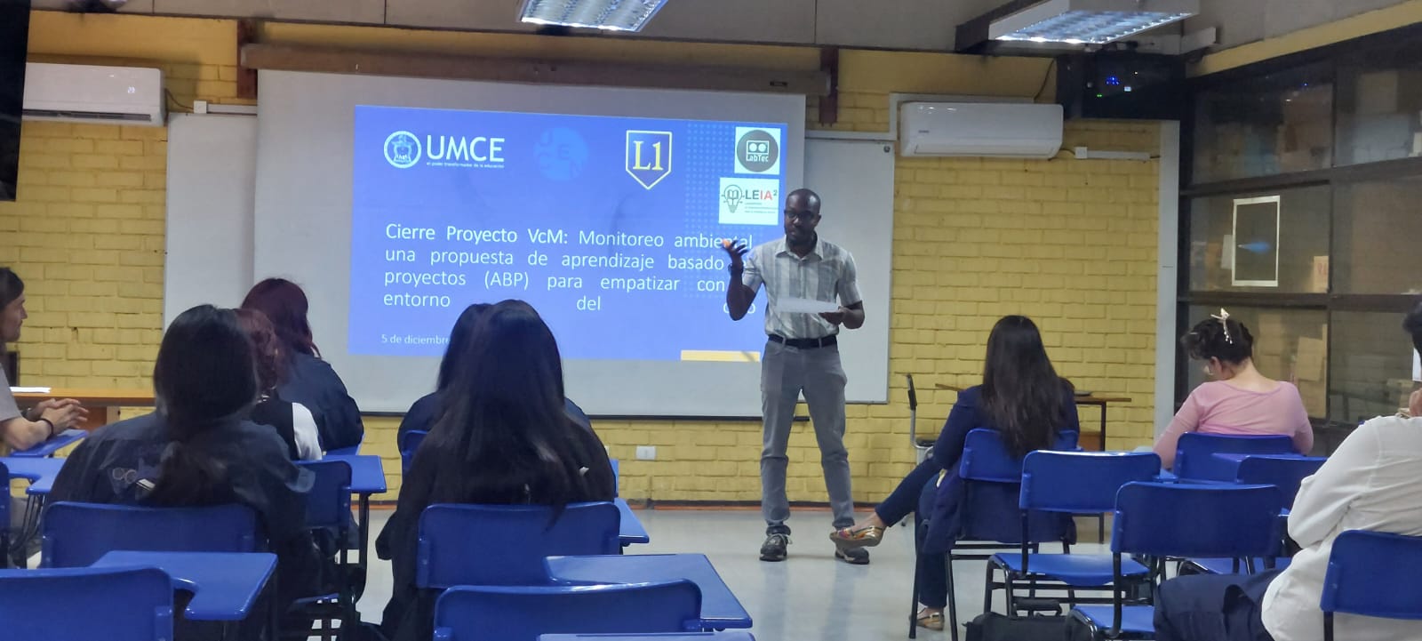 En el Departamento de Física de la Universidad Metropolitana de Ciencias de la Educación se realizó el segundo cierre del proyecto de Vinculación con el Medio “Monitoreo ambiental, una propuesta de aprendizaje basado en proyectos (ABP) para empatizar con el entorno del otro)”, dirigido por el académico Dr. Nelson Sepúlveda y financiado por fondos concursables VcM UMCE 2025.