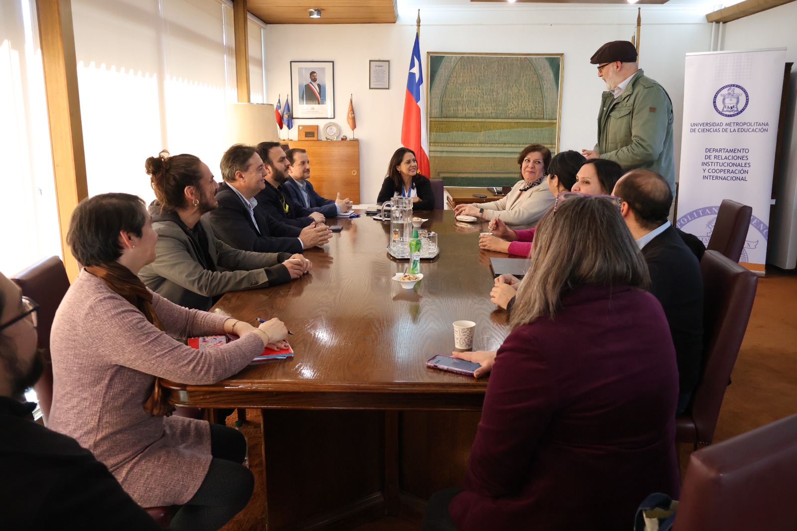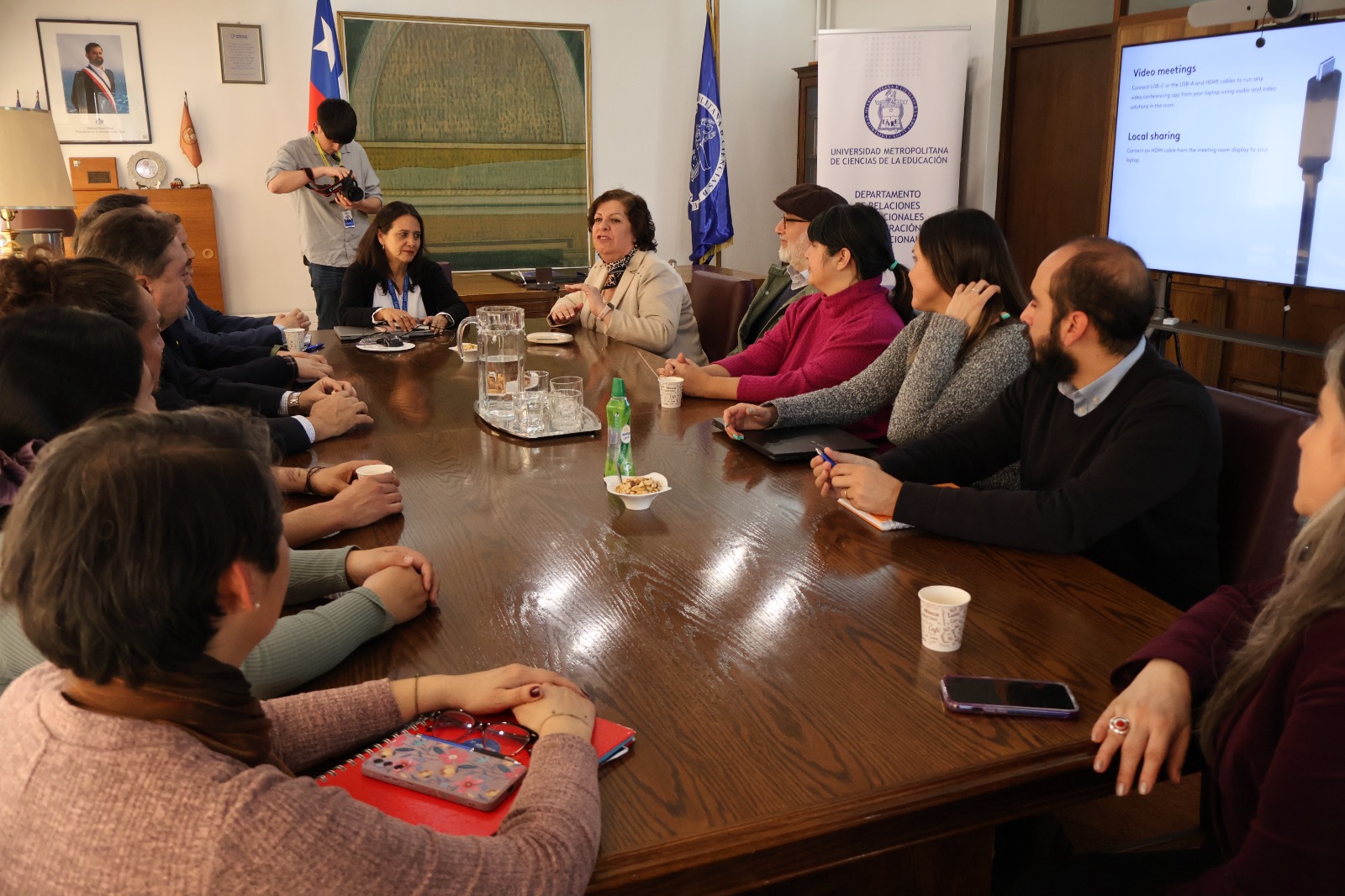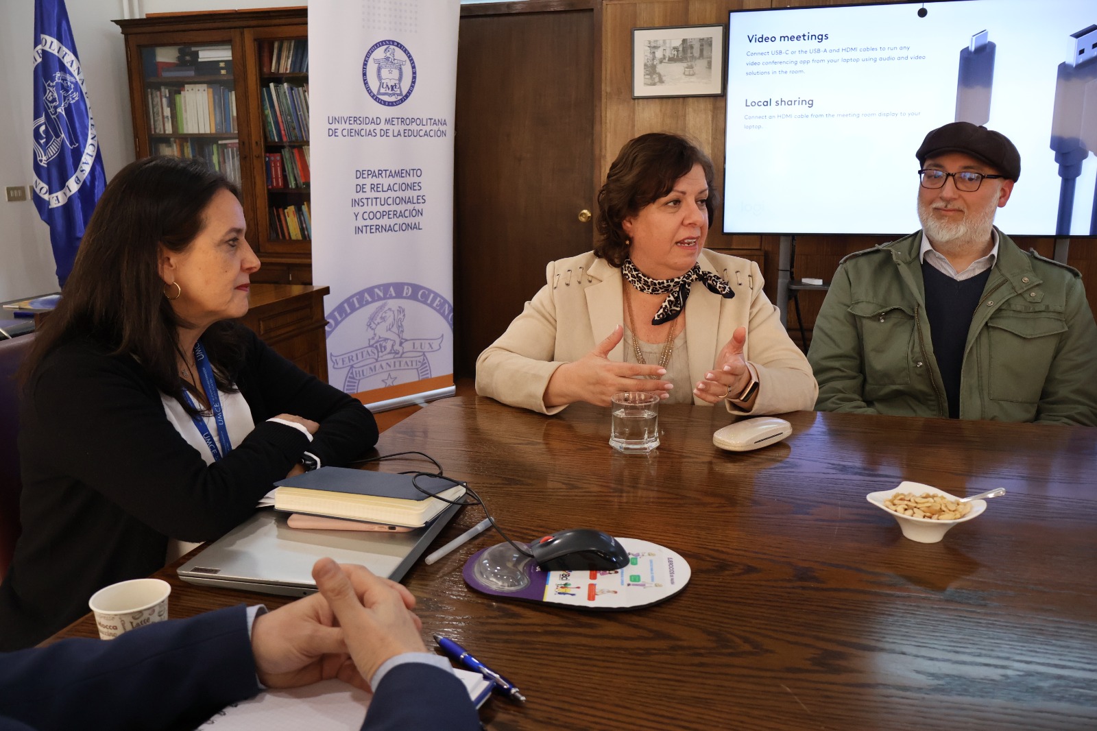 Por parte de la UMCE, integraron la reunión el Vicerrector de Investigación y Postgrado, Luis Flores; el jefe del Departamento de Relaciones Institucionales y Cooperación Internacional, Malcolm Álvarez; la directora de Educación Continua, Karina Alvarado; su secretario académico, Osvaldo Molina; y las profesionales Marcela Aracena, de la Dirección de Prácticas, y Nancy Lucero y Ruth Molina, la Dirección de Postgrado.