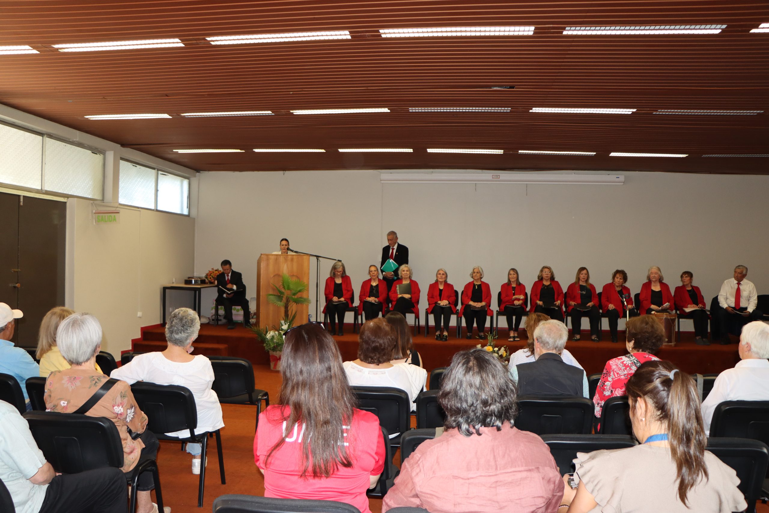 Durante la conmemoración, el coro interpretó diversas piezas corales que resonaron entre recuerdos, agradecimientos y fraternidad, generando un ambiente de profunda emoción entre los asistentes. Dando la bienvenida a la celebración, la Rectora de la UMCE, Dra. Solange Tenorio Eitel, destacó el valor humano, cultural y la trayectoria de quienes han mantenido este legado vigente: “En cada nota, en cada voz y en cada danza, se expresa el sentido más noble de la educación pública: el encuentro, la creatividad y la comunidad”.