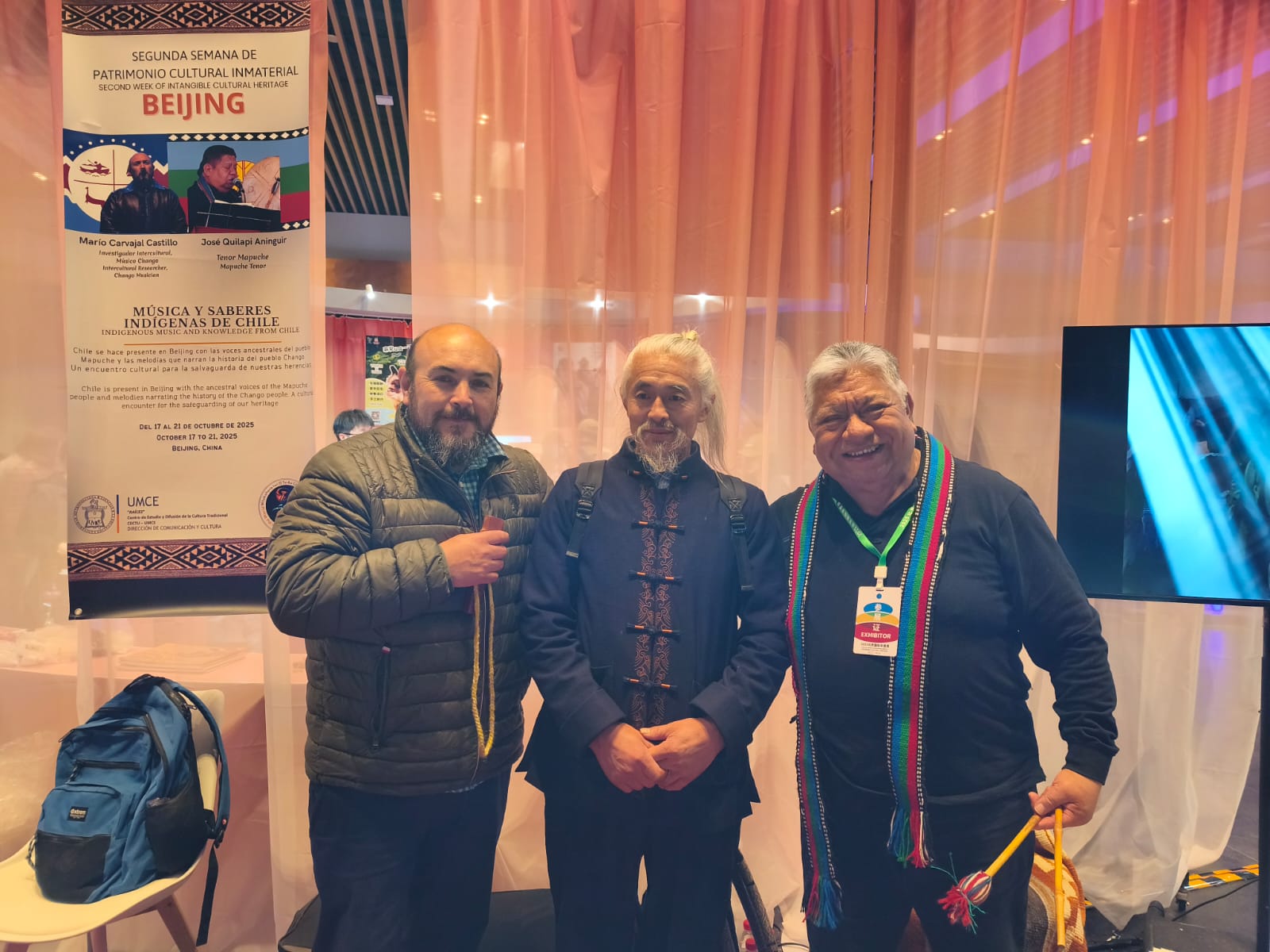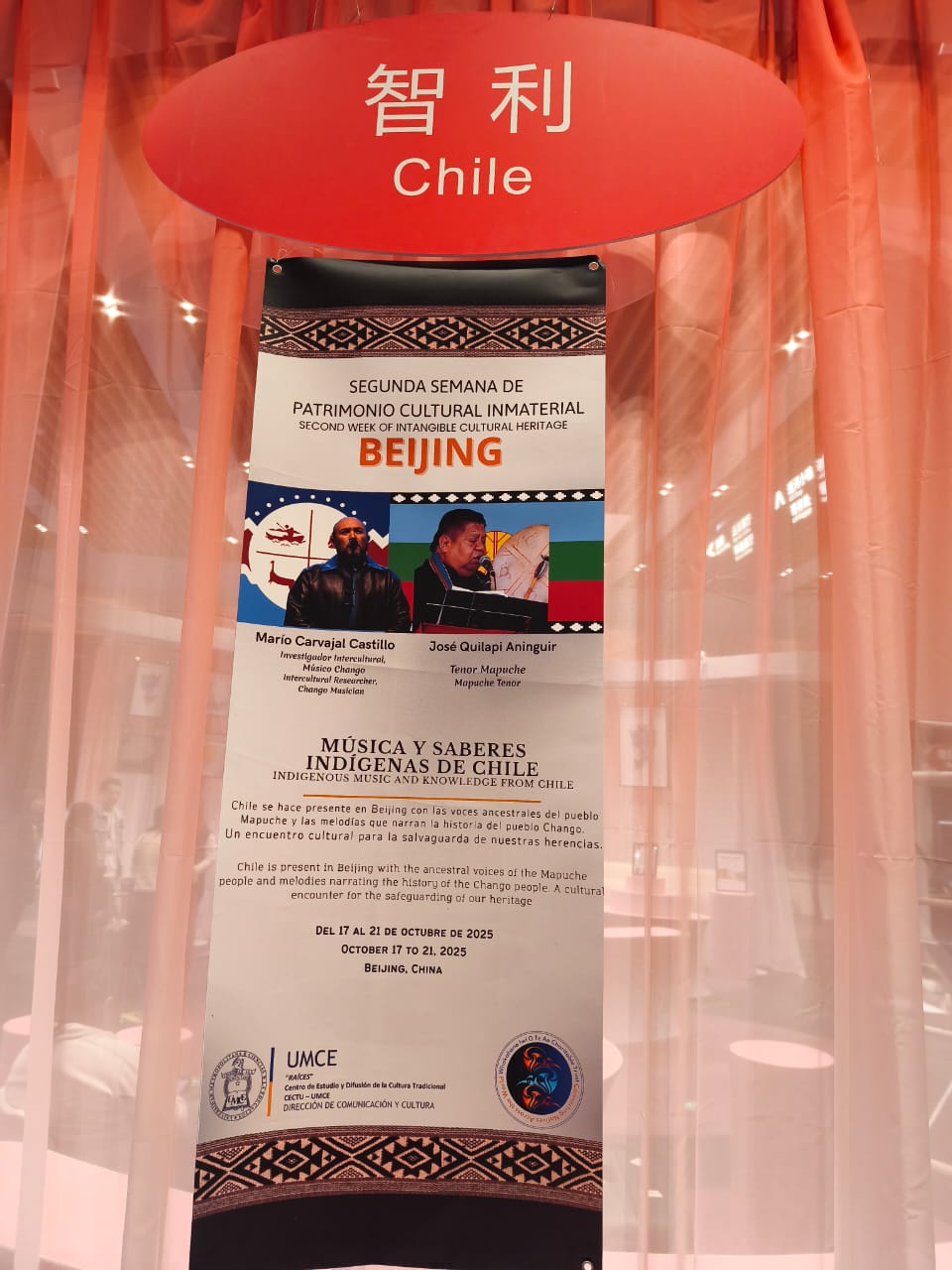El músico e investigador José Quilapi Aninguir regresó a la UMCE luego de una visita de 7 días a Beijing, China, ciudad en la cual participó como expositor, representando con su voz tenor al pueblo Mapuche, fue invitado al 2° Semana de Patrimonio Cultural Inmaterial BEIJING, al que asistió junto a Mario Carvajal, quien representó musicalmente al pueblo Chango. Quilapi mencionó que la invitación estuvo enmarcada en el trabajo sostenido en educación intercultural de música y saberes indígenas de Chile. El profesor fue recibido por el equipo “Raíces” CECTU, encabezado por Victoria Garay.