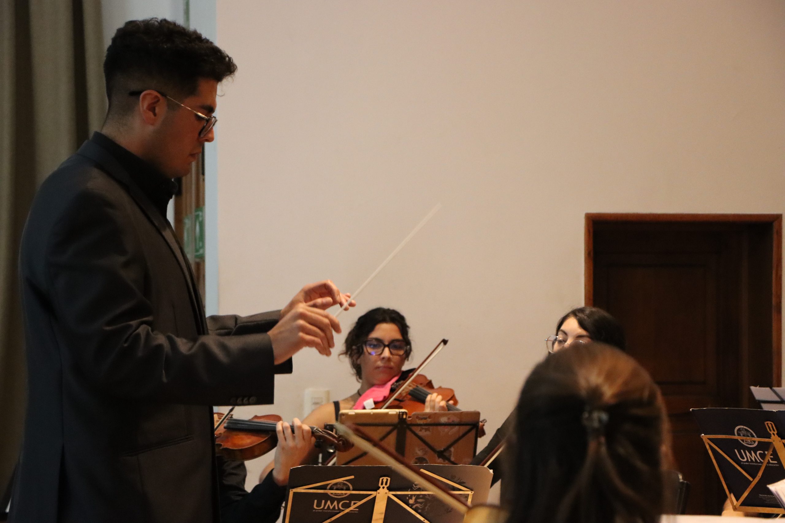 El escenario del Salón de Honor se llenó de talento, emoción y rigor musical en el Concierto de Estudiantes del Taller de Dirección Musical IV, una presentación que marcó el cierre de semestre para las y los estudiantes de la carrera de Dirección de Agrupaciones Musicales Instrumentales de la UMCE, quienes dirigieron a la Orquesta de Cámara de nuestra universidad en un exigente y significativo concierto evaluativo, bajo la guía del académico y director de la orquesta, Daniel Miranda.