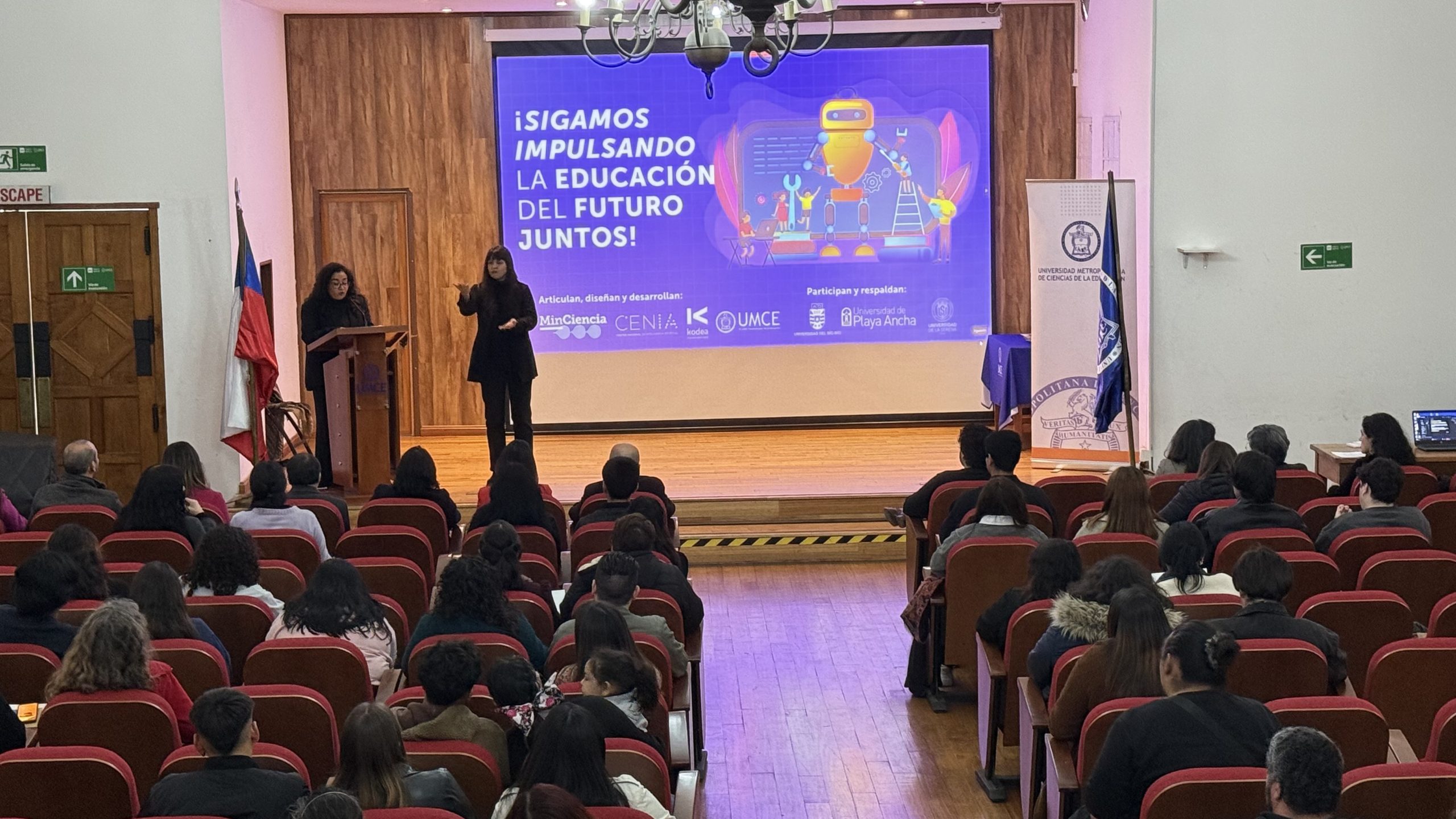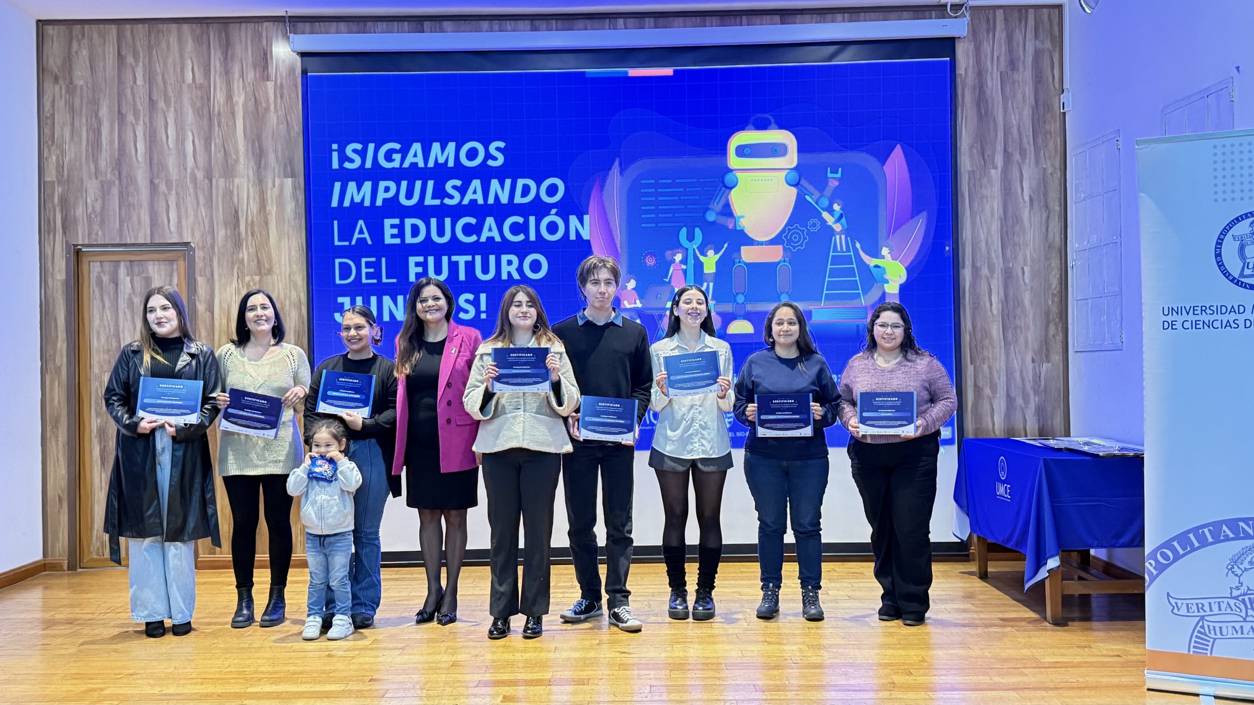 En el Aula Magna de nuestra institución se llevó a cabo la entrega de diplomas que certifican la finalización del curso: “Integración de la Inteligencia Artificial en la Gestión Pedagógica del Aula”. Instancia que reunió a autoridades universitarias, representantes de la Fundación KODEA y académicas/os de distintas facultades, además de las y los protagonistas de la jornada, estudiantes de distintas pedagogías de la UMCE.