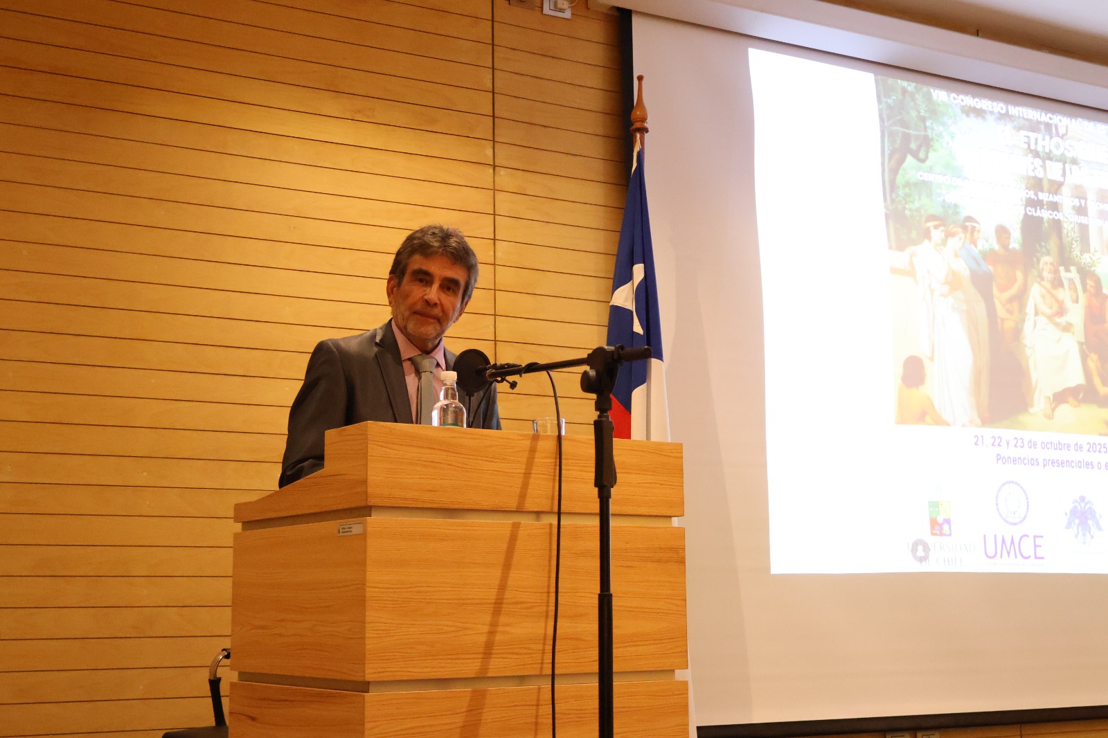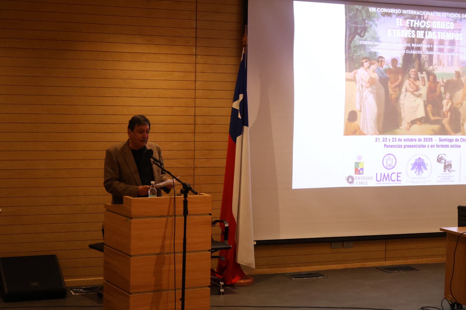 La ceremonia inicial, realizada en el Auditorio Lucía Invernizzi del campus Juan Gómez Millas de la Universidad de Chile, contó con la participación del Embajador de Grecia, Nikolaos Piperigkos, y el decano de la Facultad de Filosofía y Humanidades, Raúl Villarroel.