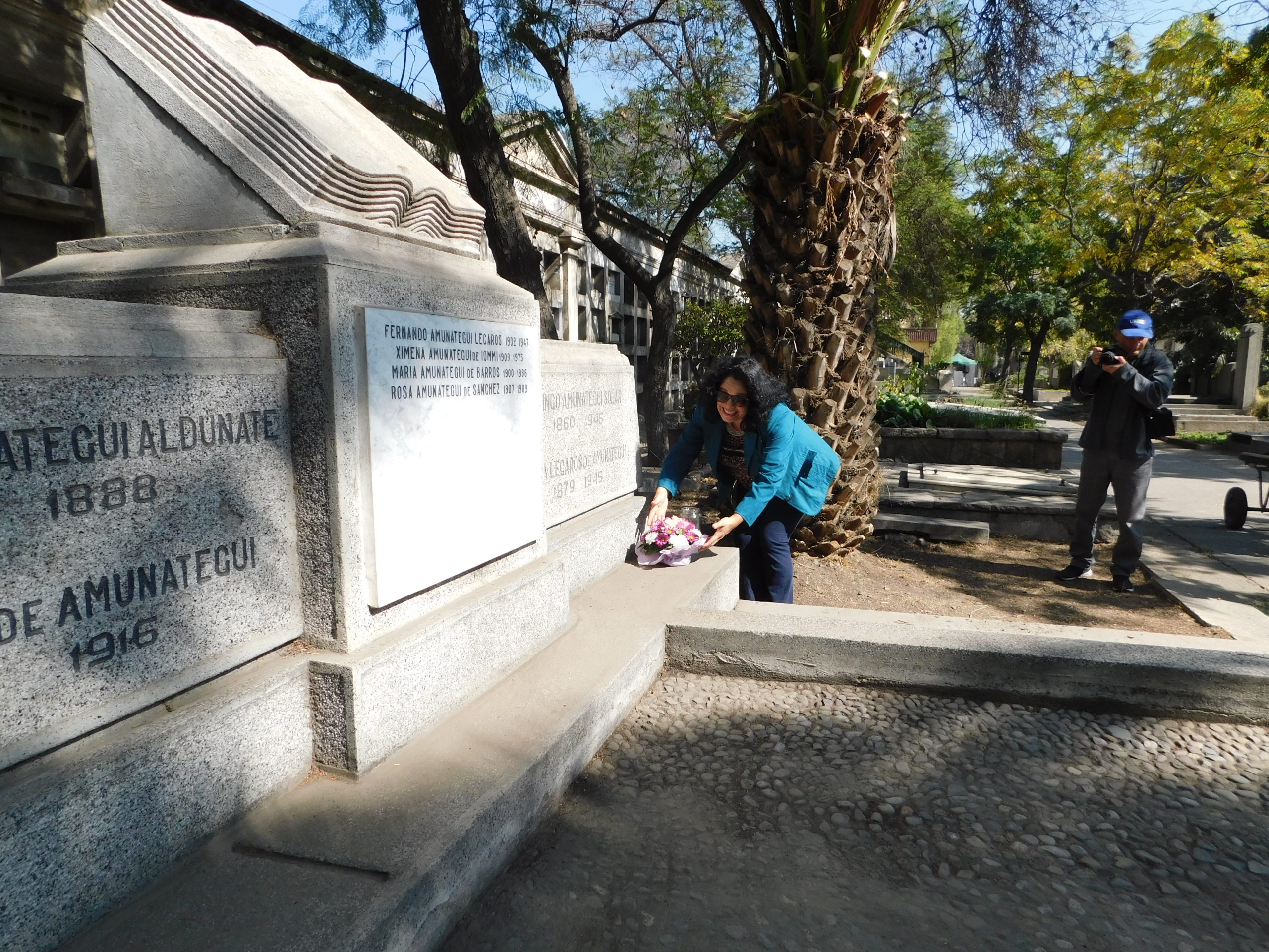 Luego, continuó la ruta hacia el lugar donde descansan los restos de otras figuras insignes del Instituto: Claudio Matte, su cofundador; Domingo Amunátegui Solar, su primer director chileno; y Pedro Aguirre Cerda, profesor egresado que llegó a ser Presidente de Chile.