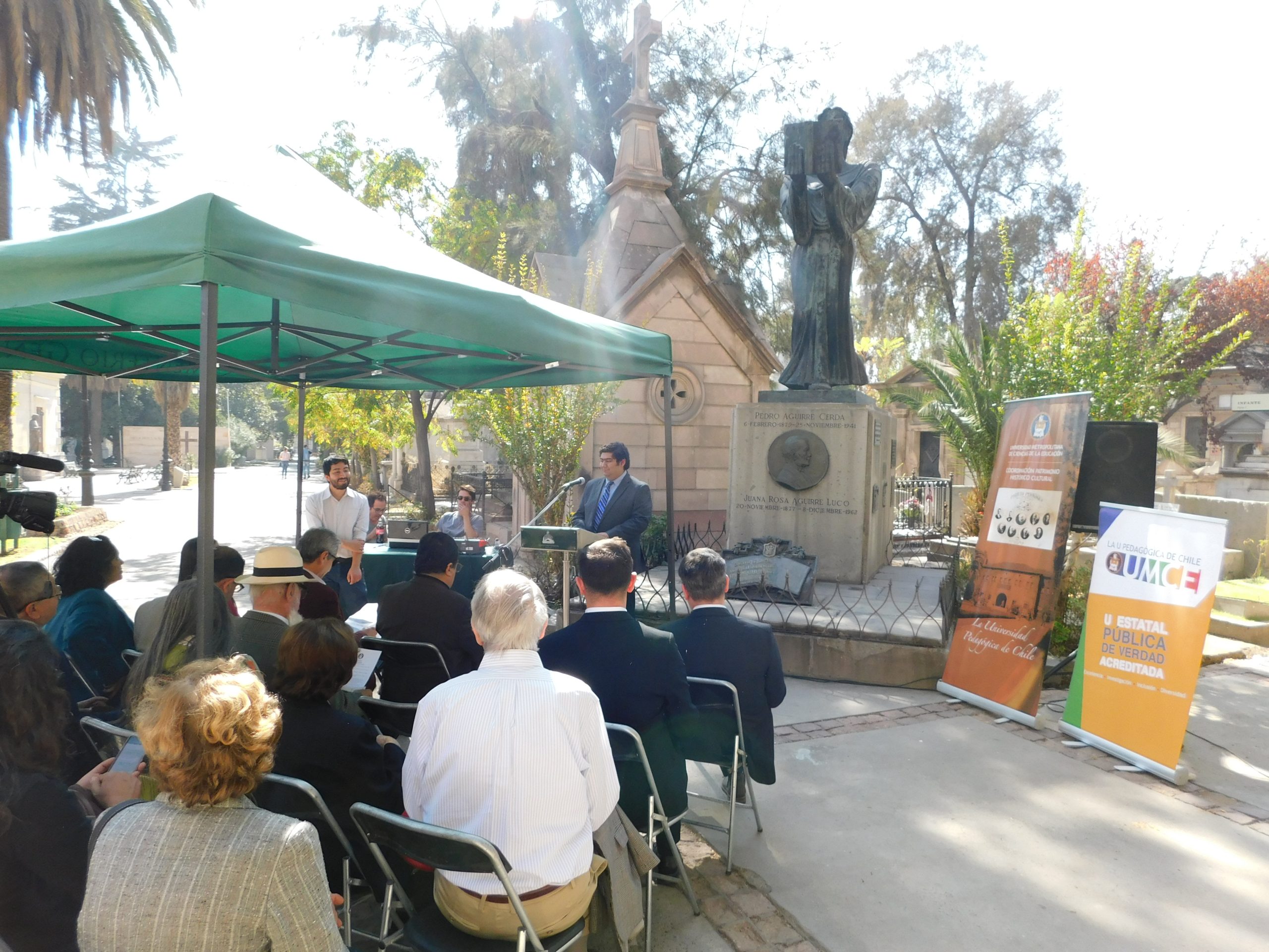 En la tumba del Doctor Friedrich Johow, primer director alemán del Instituto Pedagógico, comenzó oficialmente la conmemoración de los 130 años de la histórica institución de la cual la UMCE heredó su tradición en la formación de profesores y profesoras. Ese simbólico lugar fue el punto de partida de la romería que se realizó en el Cementerio General el miércoles 17 de abril.