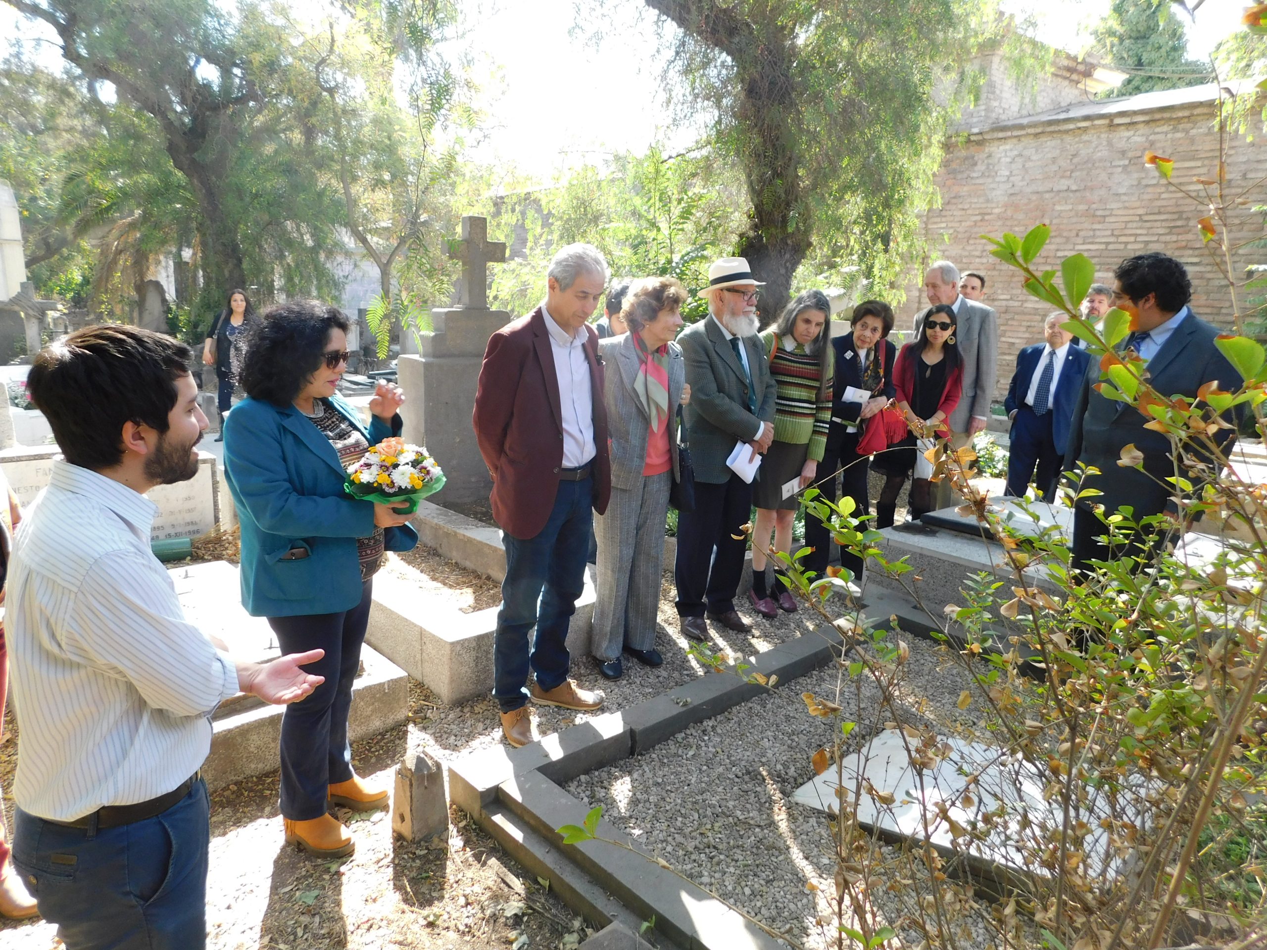 La actividad, organizada por la Coordinación de Patrimonio de nuestra universidad, contó también con la presencia de Rosa Enríquez Labarca, nieta de la destacada profesora y feminista Amanda Labarca, ex alumna del Instituto Pedagógico. “Ya son 130 años del Pedagógico, que ha tenido una influencia enorme en crear lo que hoy existe en Chile, porque eso es en gran medida fruto de la educación. En la época en que Amanda Labarca nació, había 70% de analfabetos. Se ha logrado mucho gracias a los profesores que han luchado, con o sin herramientas. Ha sido muy significativa esta romería y agradezco esta invitación”, expresó su descendiente durante la visita al sepulcro de la histórica docente, que fue la segunda parada del recorrido conmemorativo por el cementerio.