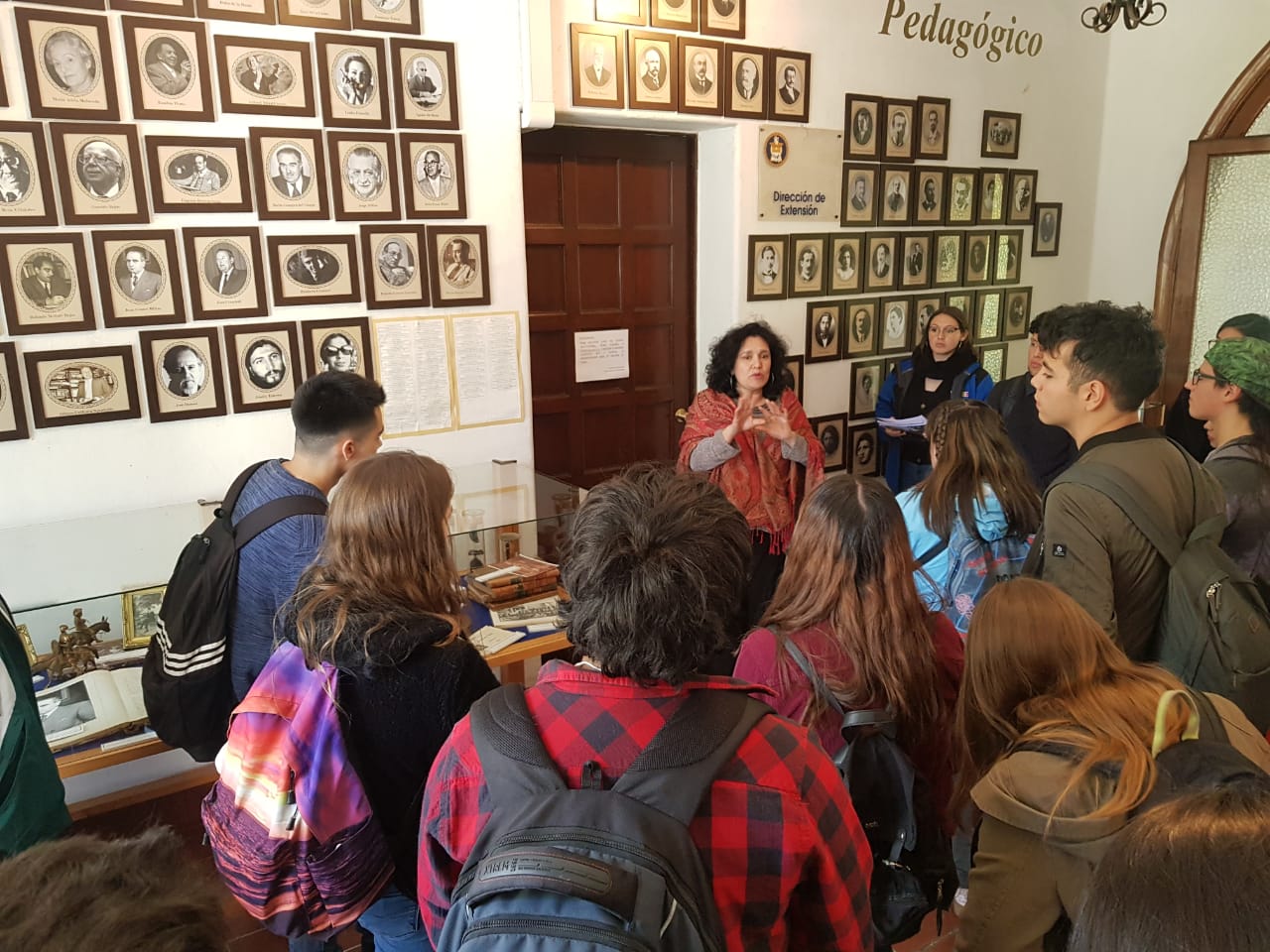 De esta forma, los/as jóvenes escucharon atentos/as una charla sobre la historia del Instituto Pedagógico, institución de la cual la UMCE hereda su tradición, a cargo de Lucía Godoy, coordinadora de Patrimonio UMCE, para luego visitar el Museo del Instituto Pedagógico Valentín Letelier.