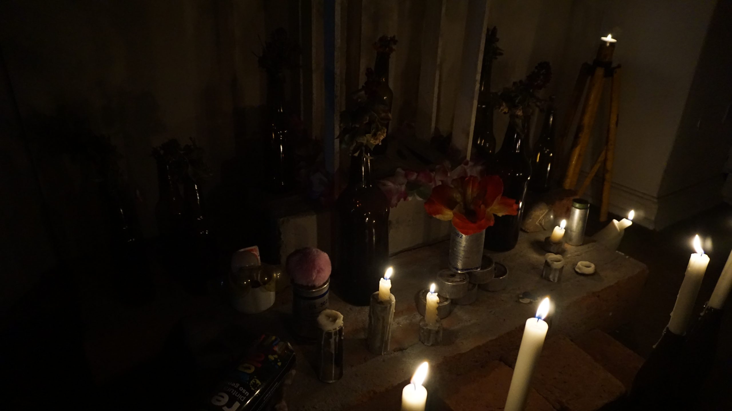 “Pragmáticas de luto y cera” es una instalación como respuesta a la revuelta social en Chile, la obra consiste en una animita construida con materiales recolectados de las protestas como bombas lacrimógenas, restos de barricadas, panfletos, entre otros. Pretendo visibilizar las muertes y rendirles luto para no olvidar sus nombres, trayendo a la memoria treinta y seis vidas arrebatadas en el contexto del estallido social.