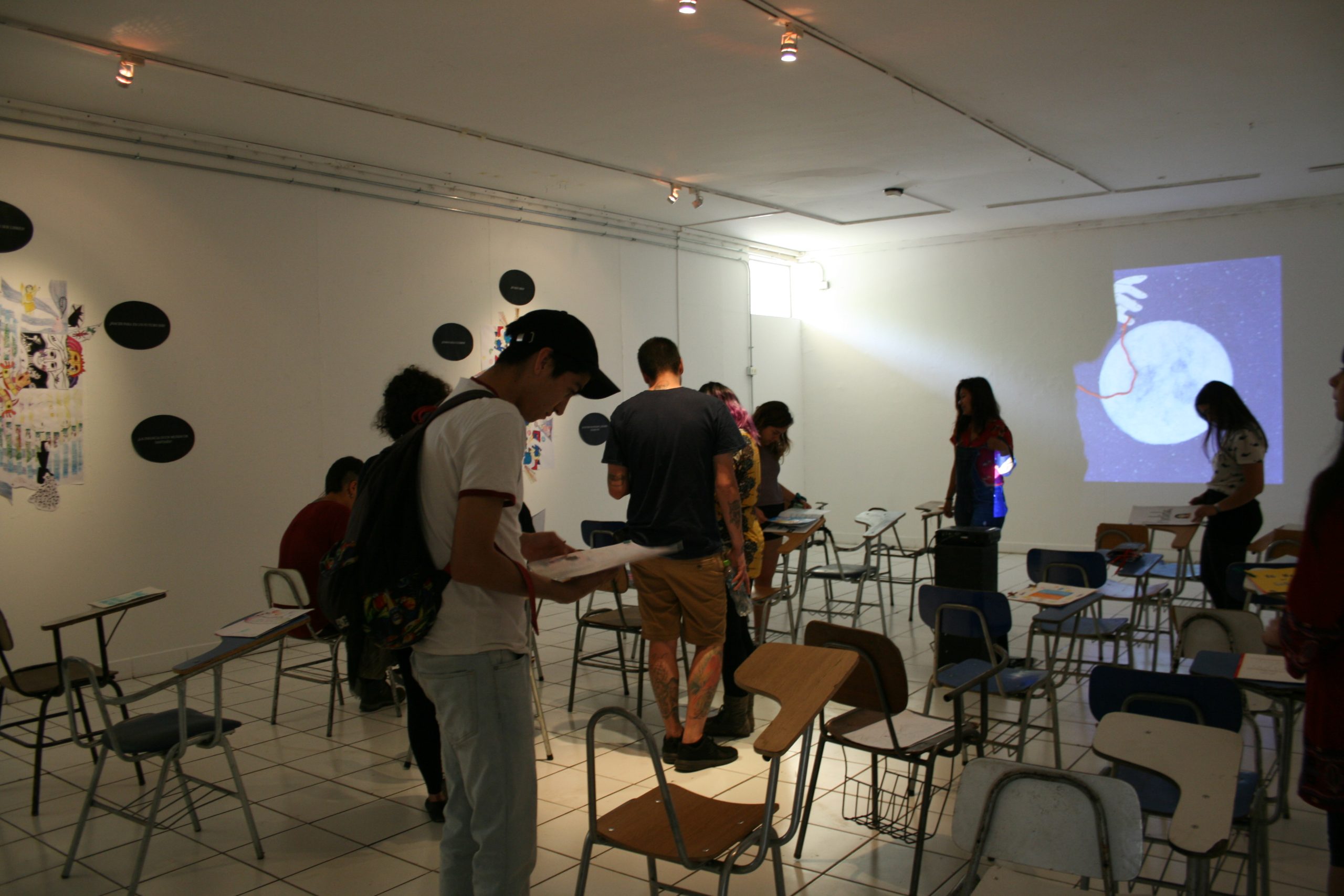 Esta actividad tuvo como objetivo fortalecer el vínculo entre la Extensión, la formación de pregrado y la investigación. En la Sala Ana Cortés, del Departamento de Artes Visuales de la UMCE, se montó una instalación visual con dibujos, ilustraciones y cuentos creados por estudiantes de pregrado de Educación General Básica de la U. de Chile, que invitaban a reflexionar en torno a las memorias escolares y pedagógicas.