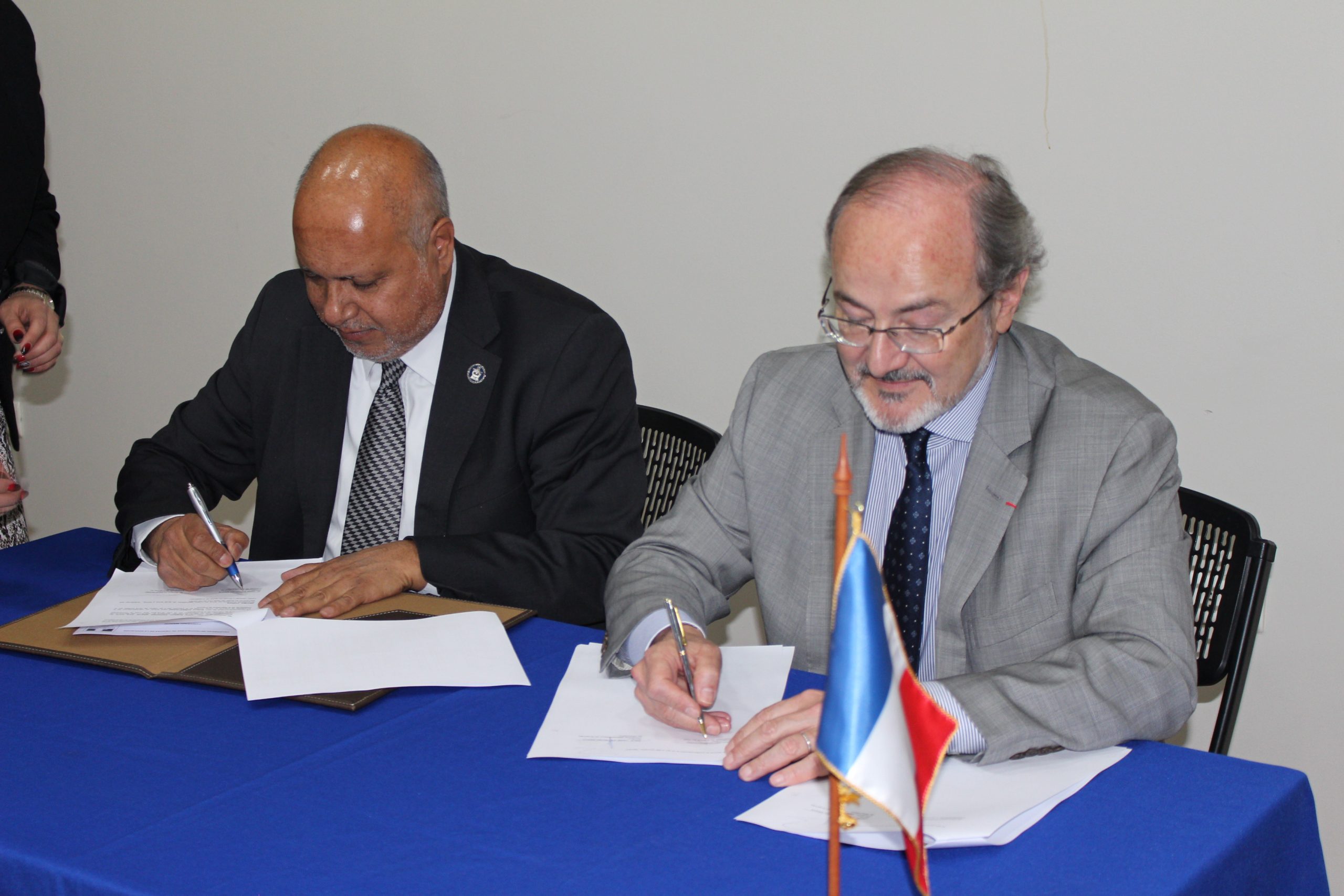 El pasado lunes 24 de septiembre el rector Jaime Espinosa Araya y el embajador de Francia en Chile, Roland Dubertrand, firmaron un convenio de colaboración entre ambas entidades. A través de este acuerdo, ambas partes se comprometen a colaborar recíprocamente en la realización de acciones tendientes a la formación de estudiantes, diseño y realización de cursos de lengua francesa de pre y posgrado, seminarios, acciones de vinculación con el medio, formación metodológica en la enseñanza de la lengua francesa y en el sistema de educación francés, movilidad académica y estudiantil, entre otros.