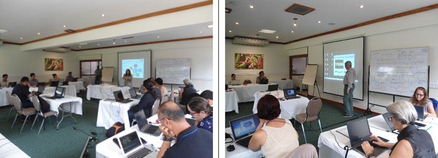 Luego de dos exitosas ediciones en 2015 y 2016, con sus etapas presenciales de talleres intensivos en dependencias de la Biblioteca Central de la UMCE[1] y del Instituto Peruano de Energía Nuclear (IPEN) en Lima[2], respectivamente, la tercera edición del curso desarrolló la etapa de talleres en el Hotel Bougainvillea, en la ciudad de Heredia, Costa Rica, entre el 17 y el 21 de julio.