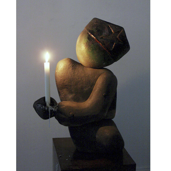 Su obra, formas fragmentadas que van construyendo cuerpos: cerros transformados en vírgenes, promeseros yacentes, ateridos por el frío de los ruegos. Insignias y estandartes conformando relieves que imaginan danzantes, restos que esperan multitudes en la explanada de una iglesia.