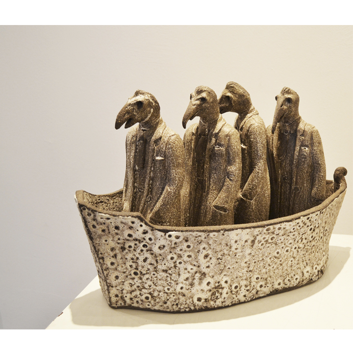Desde ese primer viaje, han sido muchos más los compartidos con ella, en todos los cuales he podido atestiguar su profunda fascinación por el desierto: las formas que se despliegan en el paisaje, los minerales que emergen dando color a los cerros, texturas y costras salinas han sido los constituyentes visuales que amalgaman sus creaciones, es decir un territorio vivo, encarnado en la arcilla porosa, los pigmentos y óxidos que utiliza. Por otra parte, sus personajes parecieran venidos del “otro lado del espejo”, cuando el mundo de los humanos y el de los seres especulares no estaban como ahora incomunicados, como relata Jorge Luis Borges, más bien eran diversos y era posible pensar formas alejadas del servilismo de la reproducción y el reflejo mimético.